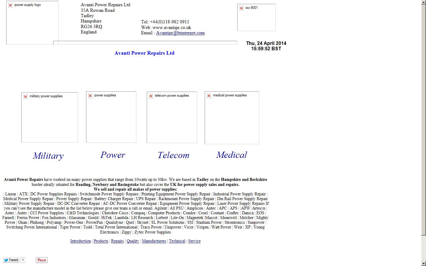 Avanti Power Repairs Ltd was established in 1996 to provide a high quality cost effective repair centre for Power Supplies. Repairing instead of replacing is a viable way to cut costs. We offer a first class repair service based on a no fix no fee basis covering a vast range power supplies for every virtual need.
