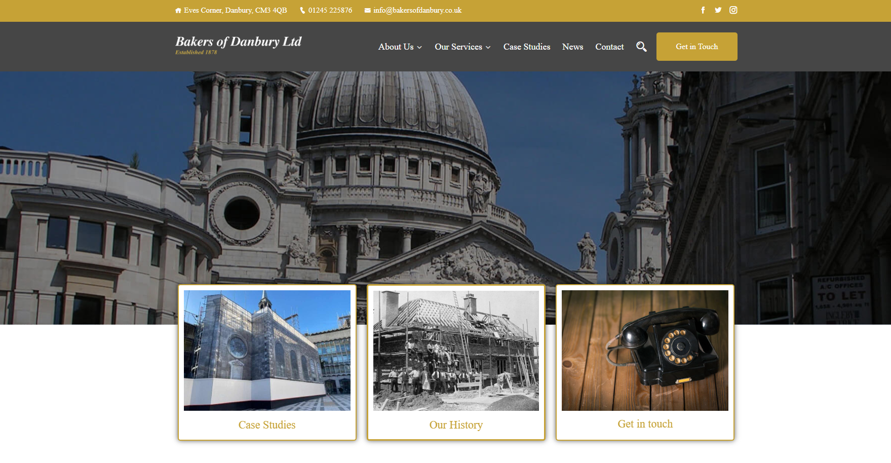 Based at our head office in Danbury, Essex, we operate as a principal building contractor. Established in 1878, we are a highly respected building company specialising in heritage restoration, new build projects and bespoke joinery. We pride ourselves on giving our customers the benefit of our experience, our project management approach and attention to detail on the buildings we conserve, refurbish, repair or construct. We work on historical buildings, churches, residential, listed properties and new build projects undertaking major works through to smaller projects. Our own joinery and stonemasonry departments also allows us to carry out specialist bespoke work. Over the 145 years that the company has been trading, Bakers of Danbury has developed into a diverse business with a strong blend of traditional ethics and modern capabilities. We work throughout Essex, East Anglia, London, Kent and Hertfordshire. Bakers of Danbury Ltd is owned by its Senior Management team who are committed to providing all our customers with high quality workmanship and service. We look forward to hearing from you to discuss your project.