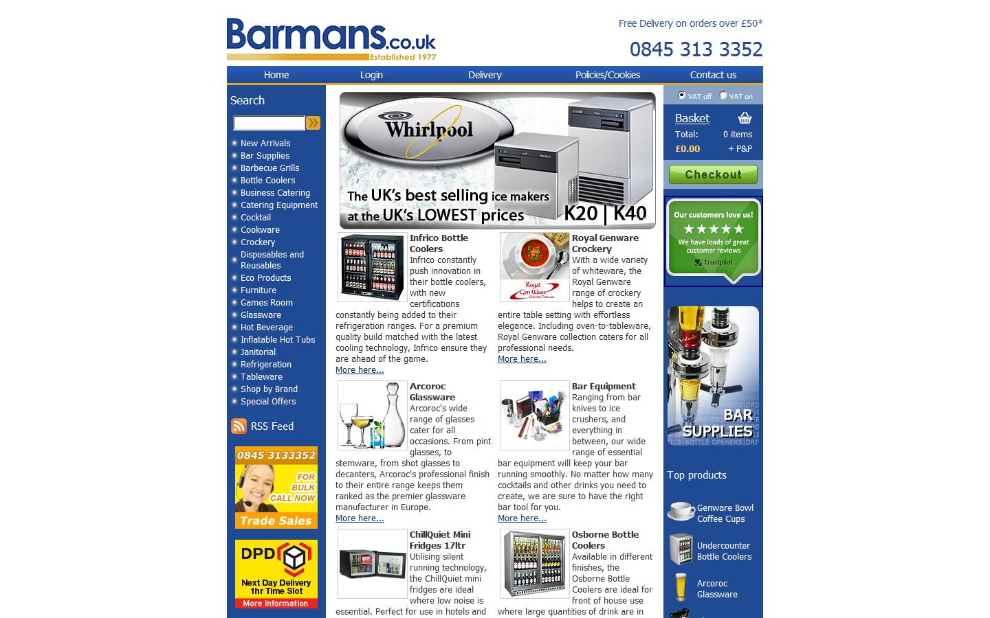 Barmans Ltd have numerous years in the catering market supplying all kinds of catering products from bottle coolers, disposables, crockery, bread boards, glassware, tableware, microwaves, pizza ovens, kitchen furniture, bar supplies and many more.