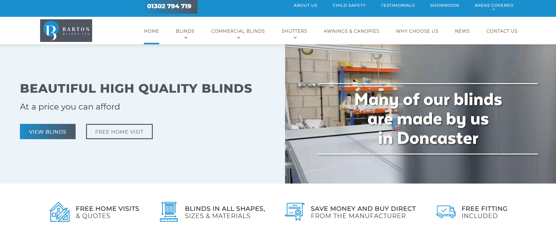 Originally consisting of a two person team, we now own the biggest blind showroom in Doncaster and proudly boast a workforce containing skilled, knowledgeable and friendly individuals who are able to deliver the finest service to domestic and commercial customers alike, whatever their query may be. Our standing as a leading provider of blinds in the Doncaster area is thanks to a combination of quality products, comprehensive knowledge of our sector and a dedication to first rate customer service and results.