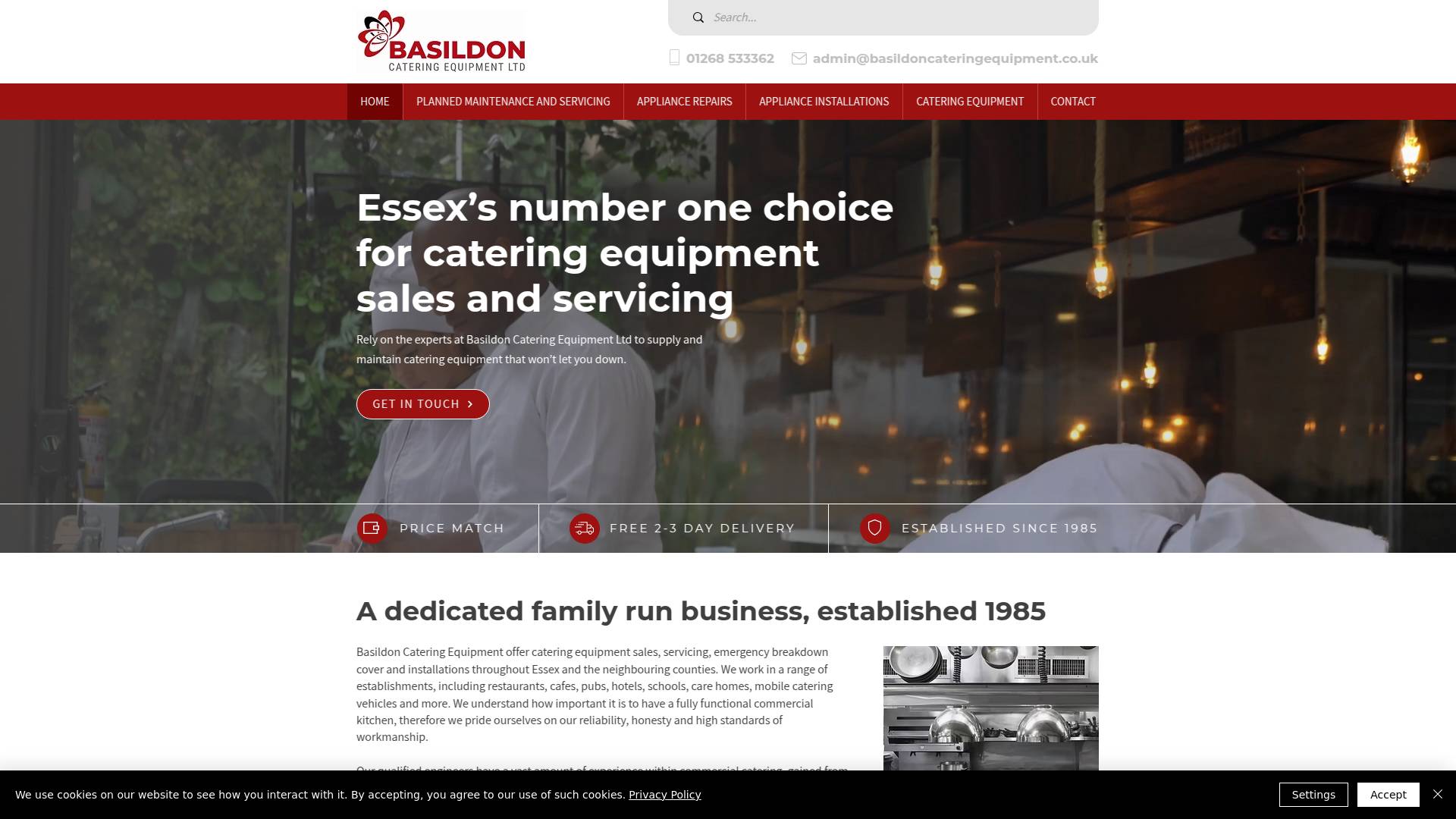 Basildon Catering Equipment offer catering equipment sales, servicing, emergency breakdown cover and installations throughout Essex and the neighbouring counties. We work in a range of establishments, including restaurants, cafes, pubs, hotels, schools, care homes, mobile catering vehicles and more. We understand how important it is to have a fully functional commercial kitchen, therefore we pride ourselves on our reliability, honesty and high standards of workmanship.