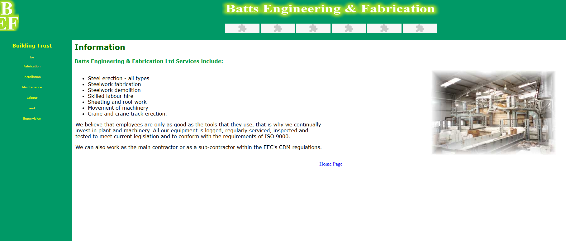 We believe that employees are only as good as the tools that they use, that is why we continually invest in plant and machinery. All our equipment is logged, regularly serviced, inspected and tested to meet current legislation and to conform with the requirements of ISO 9000.
