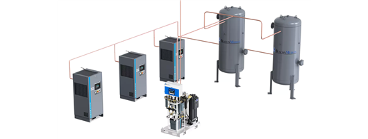 The advanced duplex air purification system with central control meets MDR 2017/45, EN ISO 7396-1, and HTM02-01/2022 standards for medical air supply. It produces medical-grade air up to 1000 kPa (10 bar), aligning with the European Pharmacopoeia. Supporting up to six compressors, the system ensures a steady medical air flow. Its modular design allows for tailored compressor technology choice, offering a reliable, high-quality air solution for healthcare needs.