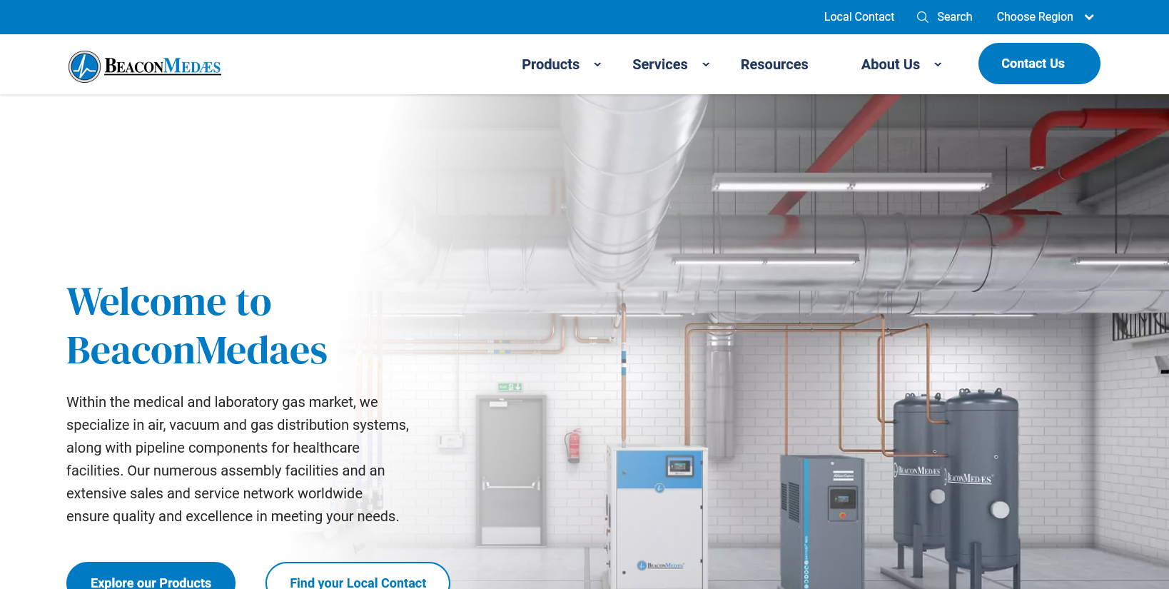 BeaconMedaes is the world's leading supplier of medical gas equipment, including medical air plant, medical vacuum plant, AGS plant, manifolds and pipeline components to HTM 02-01 and ISO 7396-1 standards.
