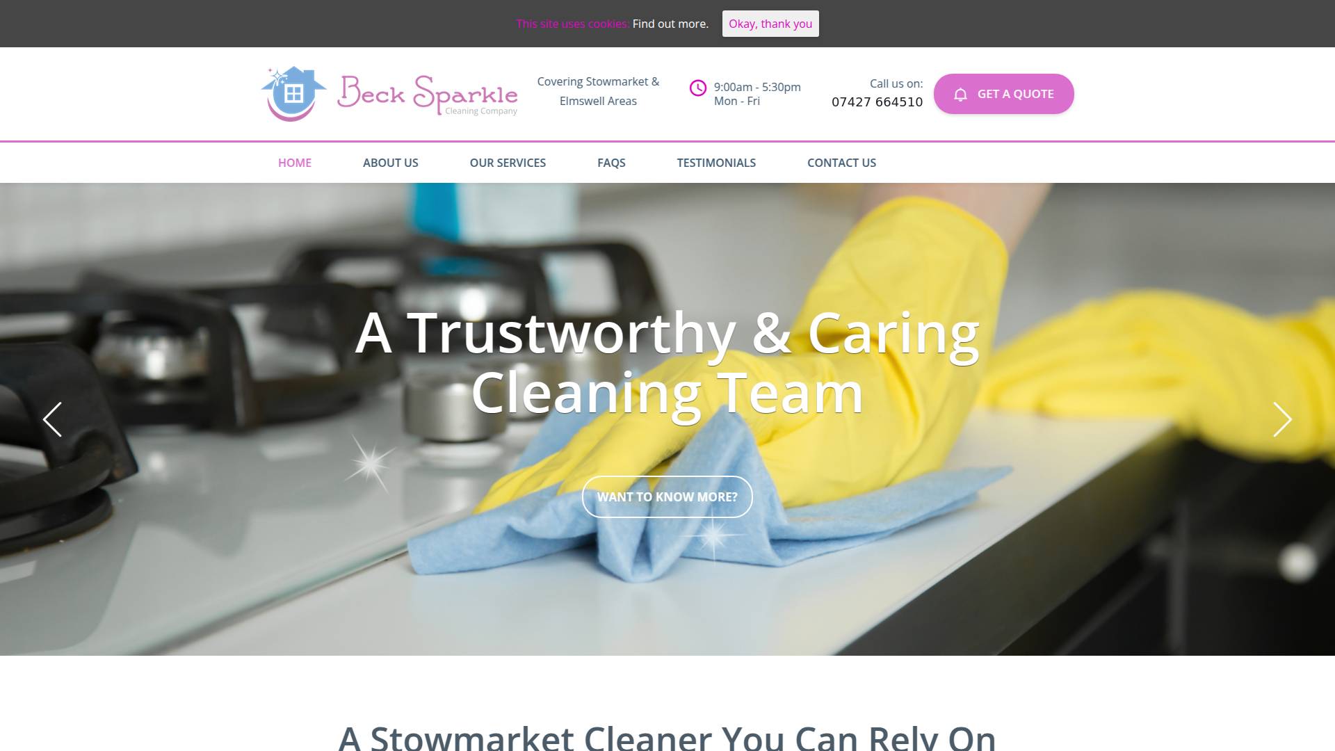 Our diligent management and work ethic are central to the Beck Sparkle service. We deliver consistent and thorough cleaning services in Stowmarket and surrounding villages, priding ourselves on offering a personal and tailored service to all our customers.