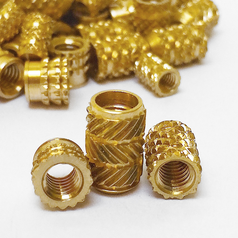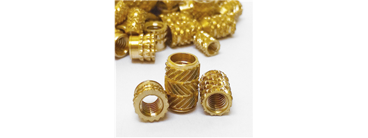 It is always preferable to mould-in our standard brass inserts for maximum security − an M4 insert for example will typically provide a pull-strength of around 140lbs (65 kilos) when moulded-in with 3mm of material moulded around it. This would equate to a 12mm diameter boss for an M3 or M4 insert.