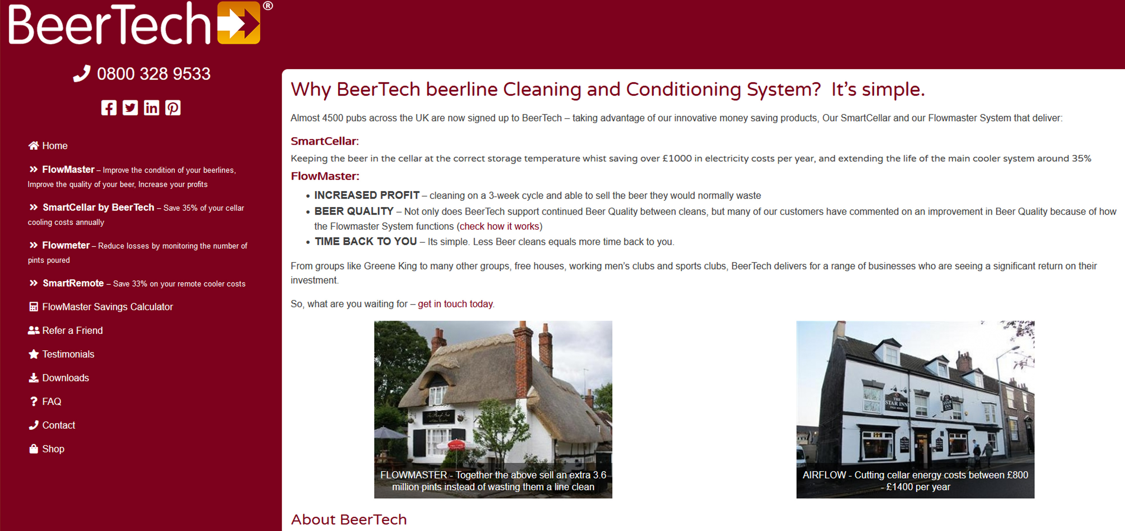 BeerTech UK Ltd are leading specialists in the design and distribution of high-quality energy saving and beer line cleaning and conditioning systems that have been utilised in over 4500 pubs and restaurants throughout the UK. Promising an increased profit, good quality beer and more time back to our clients, we at BeerTech are fully committed to ensuring that customers are fully satisfied with their overall service and that their standards have been met accordingly. Our customers include various successful brands such as Greene King, Marstons, Whitbread and Grosvenor Casinos.