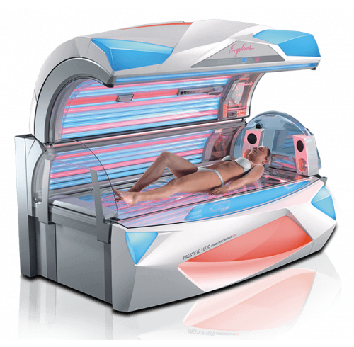 The new Prestige 1600 introduces the improved Hybrid Performance and Beauty tanning method , setting new standards for tanning technologies. The unique combination of UV radiation and red light can conjure up an attractive and long-term tan along with the anti age effects of rejuvenated skin care.