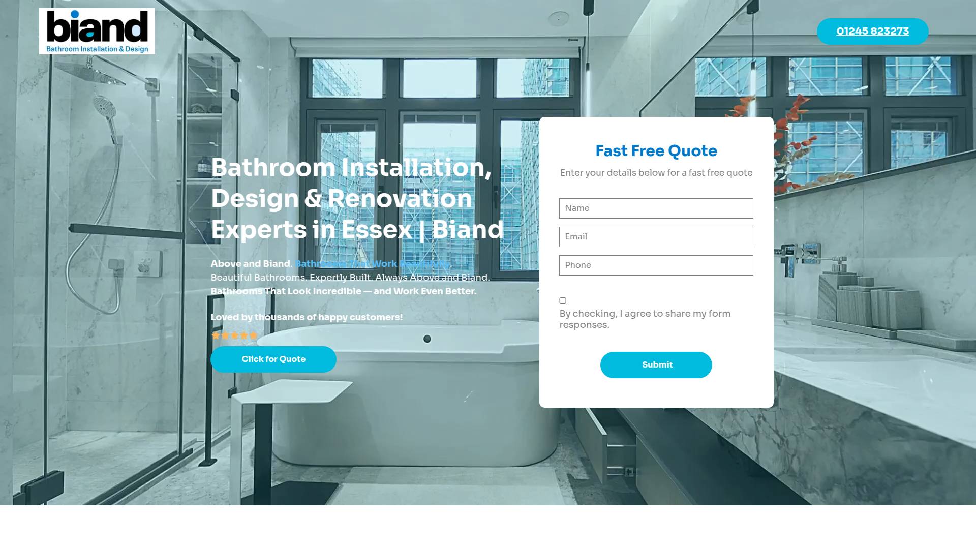 Biand is a specialist bathroom design and installation company serving homeowners across Essex, dedicated to creating stylish, functional bathrooms tailored to your vision. Whether you’re planning a full renovation, a wet-room conversion, or simply need plumbing and heating expertise, Biand handles every stage with care and precision. From the initial design consultation and tiling to plumbing, electrics and finishing touches, our fully vetted team delivers with minimal disruption and outstanding results. We use premium materials, are committed to accessibility and sustainability, and provide transparent quotations and ongoing support long after the job is done. With Biand, your bathroom becomes more than just practical; it becomes a space you genuinely enjoy.