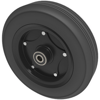 Solid black rubber wheels with various options for bearings, diameters and load rating. Ideal for a huge range of industrial applications.