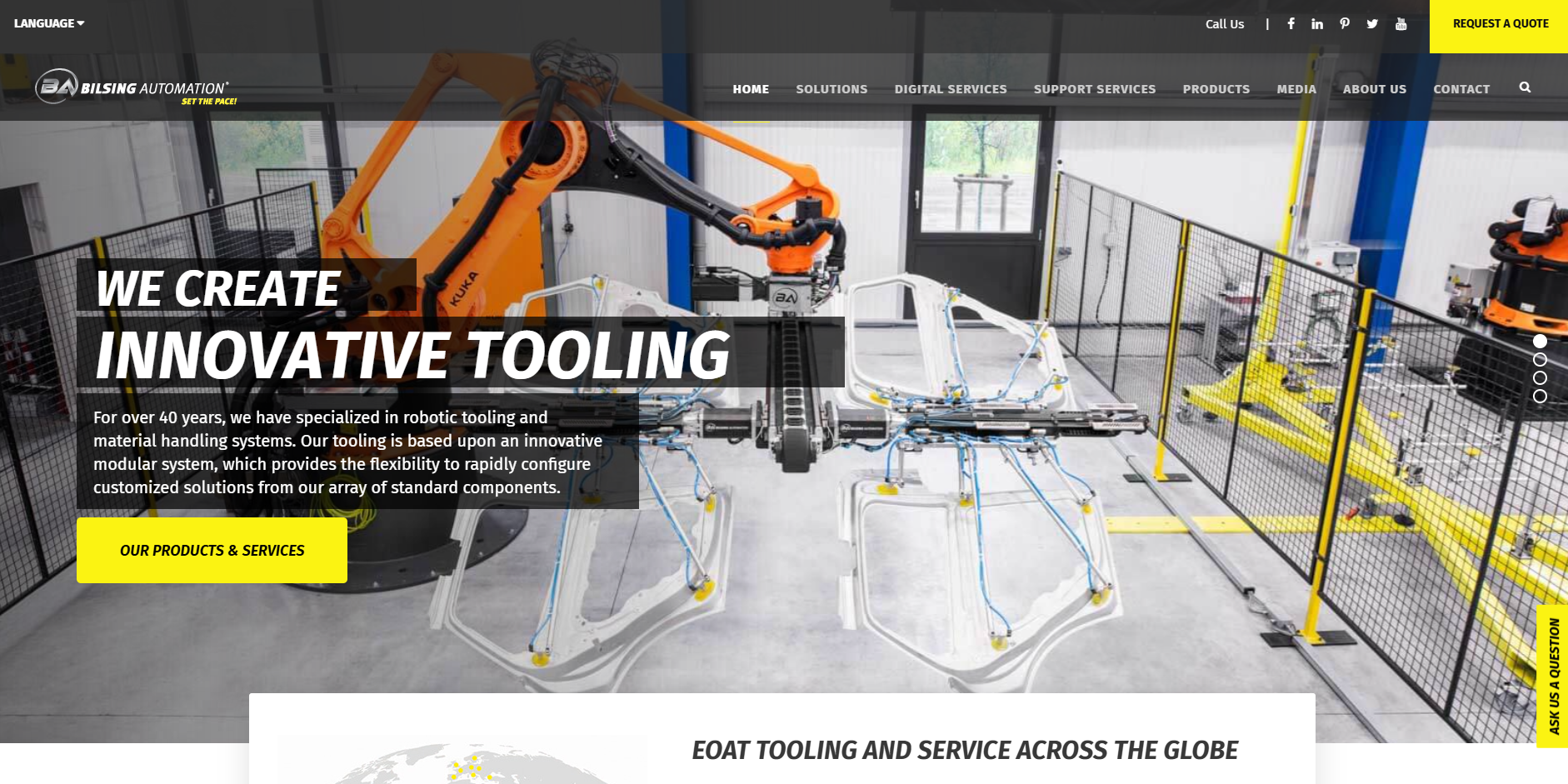 Bilsing Automation is a world leader in automotive stamping and bodyshop EOAT tooling, as well as in developing material handling solutions for injection molding, fabrication, packaging, hydroforming and non-automotive applications.