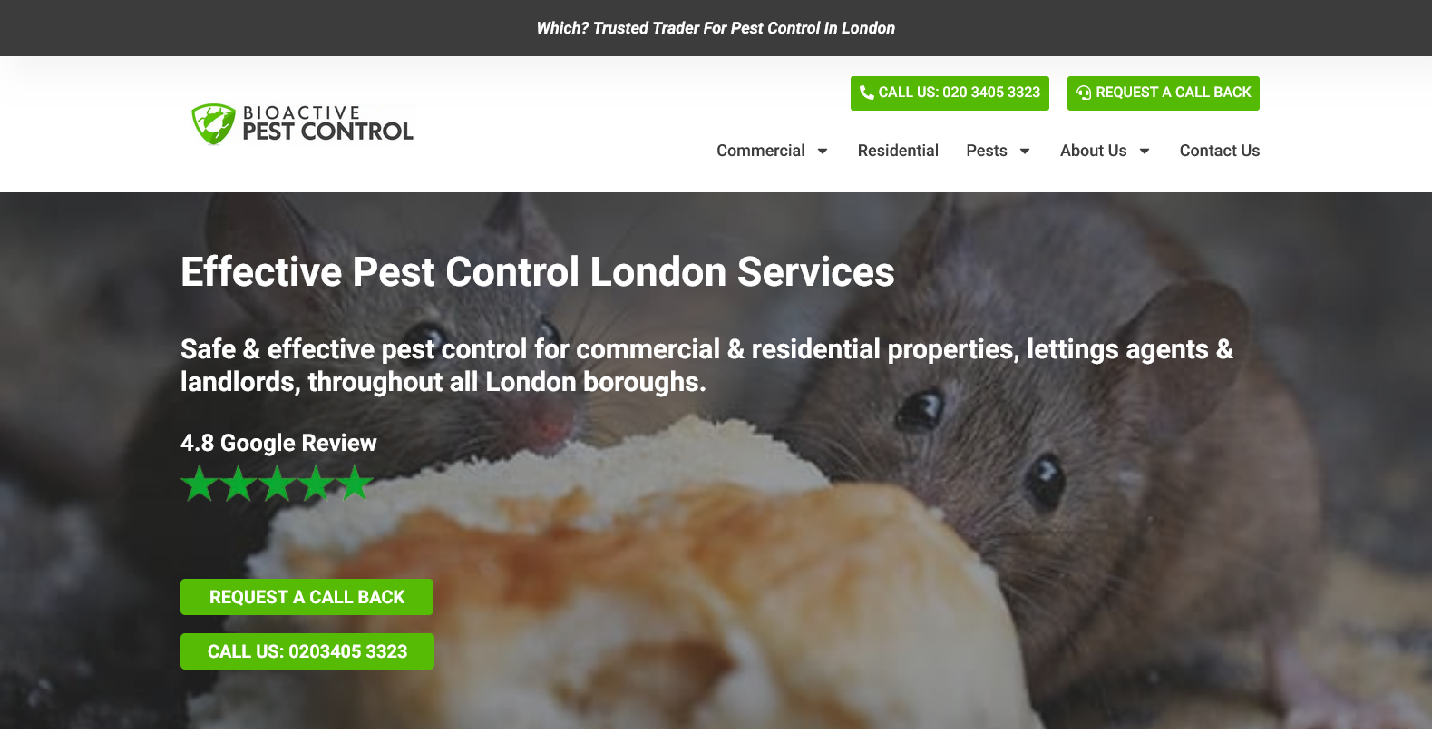 Serving the Greater London, Kent and Sussex areas, Bioactive Pest Control offer both commercial and residential pest control services, specialising in the removal of rats, mice, squirrels, moths, fleas, wasps, cockroaches, spiders, crickets, bed bugs, flies, termites and more.