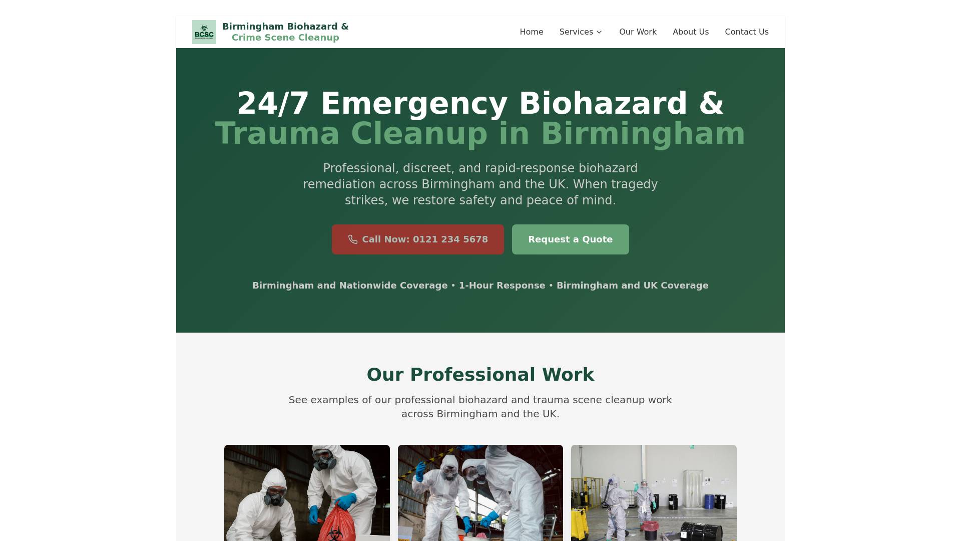 Birmingham Biohazard & Crime Scene Cleanup is a certified and experienced hazardous cleaning company dedicated to restoring safety and peace of mind to homes, businesses, and public spaces. With years of hands-on experience, our team is trained to handle the most sensitive and dangerous environments with care, respect, and complete discretion.