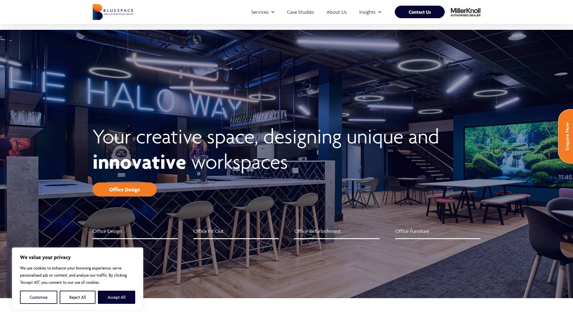 At Bluespace, we're passionate about creating office environments that foster collaboration, ignite innovation and empower people to do their best work. Our expert designers have a keen eye for aesthetics, functionality and brand representation. With over 20 years experience, we've helped many businesses across Norfolk, Suffolk and Cambridge transform their workspace through our office design, fit out, furniture and refurbishment services.