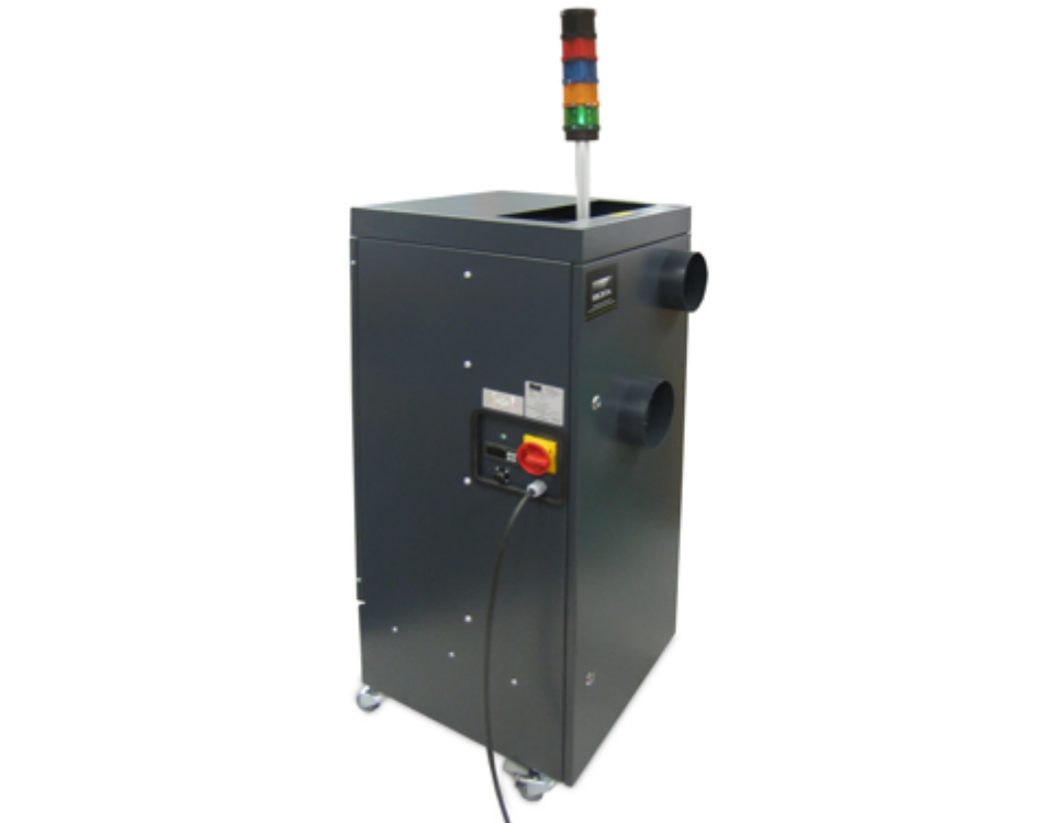 Fume extraction system for light duty laser marking, coding and engraving applications.