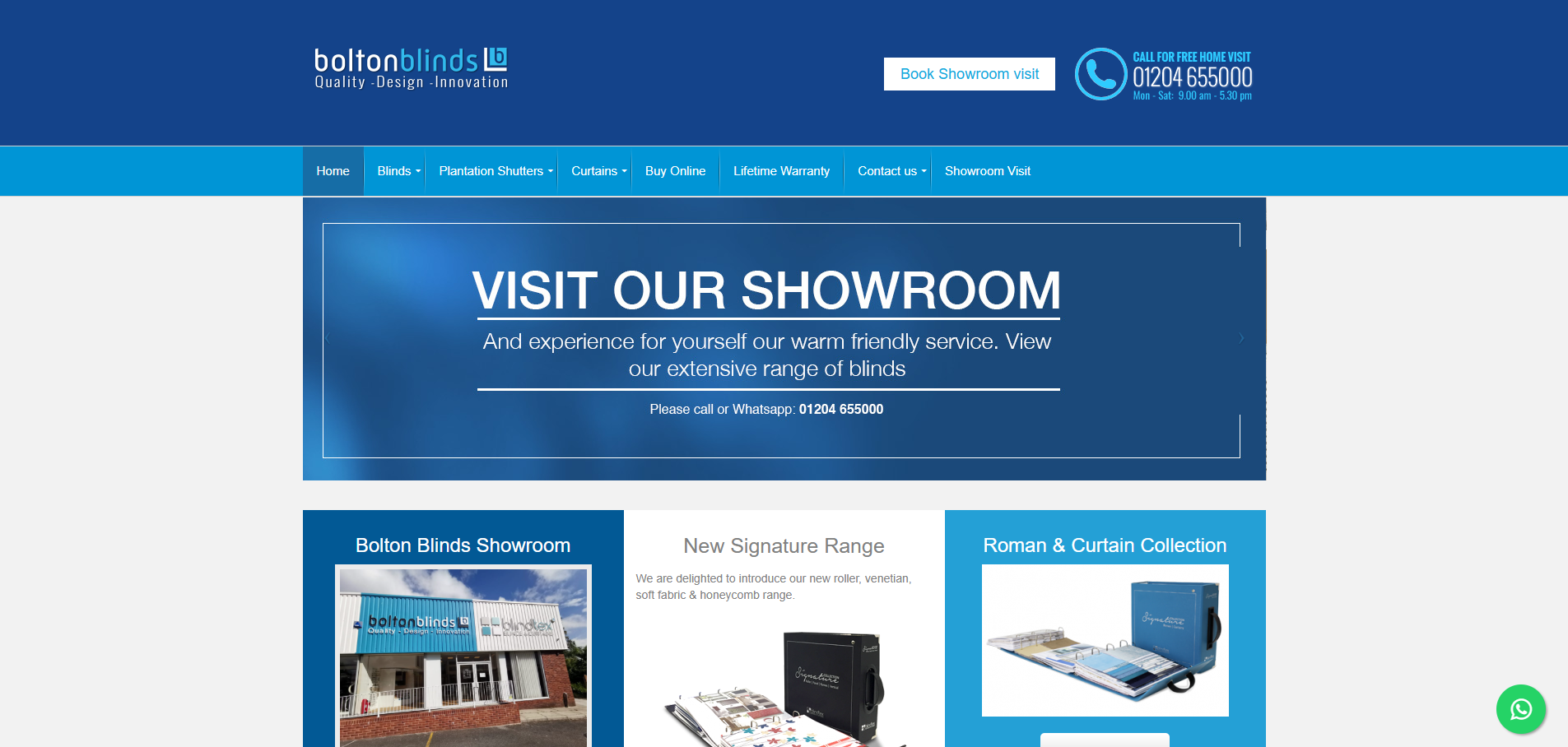 At Bolton Blinds, we believe quality and service must come first, with a massive choice of window dressings including blinds, curtains and shutters and a colour range unrivalled in the trade. We believe we have just what you need. Come and visit our showroom in Bolton on Wigan Road (Straight off the M61, Junction 5) where you can take time to find what suits your needs.