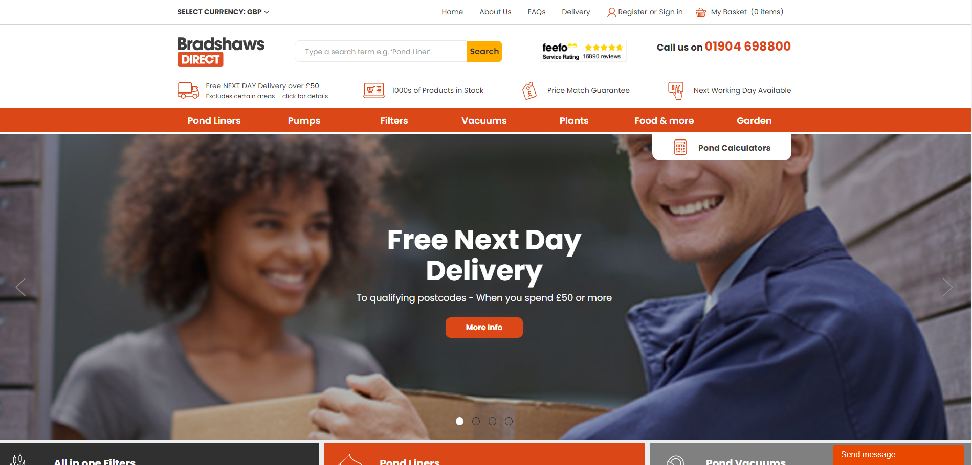 Bradshaws Direct is the UK's No 1 home shopping supplier of water gardening goods and pond equipment. Proudly serving the water gardener since 1979, our experience in ponds, water gardening equipment and pond building enables us to offer you one of the widest ranges of pond products from all the leading manufacturers including Hozelock, Oase and more.