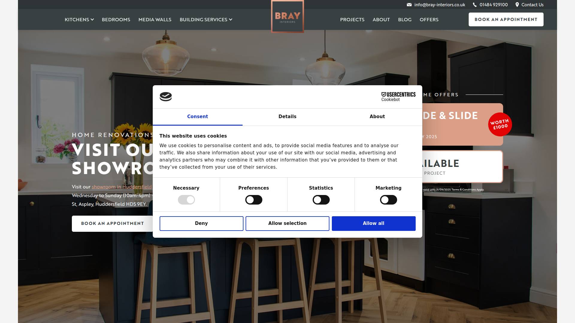 Bray Interiors is a Huddersfield-based kitchen design and renovation specialist, offering bespoke solutions across West Yorkshire. From traditional and shaker styles to sleek German handleless kitchens, we tailor each project to reflect your lifestyle and taste. Our full-service approach—from concept to completion—ensures a seamless experience, with expert designers and in-house installers managing every detail. Serving local communities including Holmfirth, Honley, Kirkburton, and Slaithwaite, we're committed to transforming homes with precision and care. Visit our showroom in Aspley, Huddersfield, to explore our latest designs and start your journey to a dream kitchen.