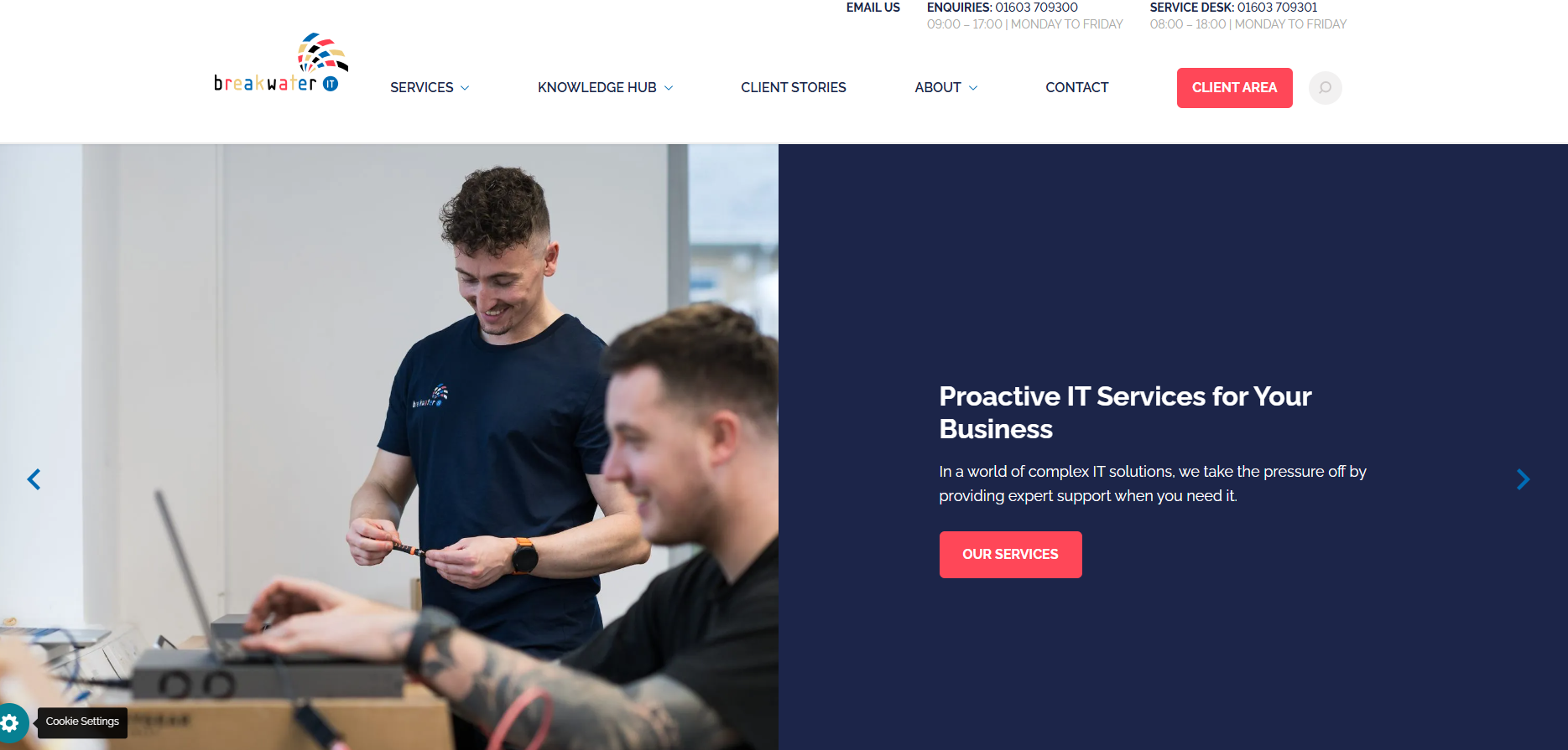 Hello, we’re Breakwater IT. We provide IT support and services to businesses in Norwich, Norfolk, and across the UK. 👋