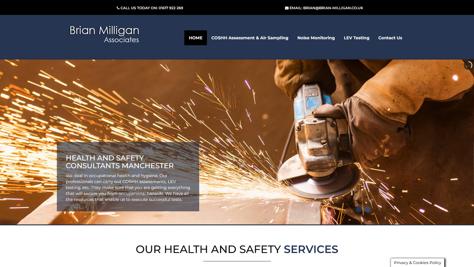 Brian Milligan Associates is an occupational health and safety consultancy founded in 1991. We regularly monitor employee exposure to noise, dust, fume, etc. to determine the risk to health and provide advice on improved control. We also undertake thorough examination and testing of local exhaust ventilation systerms. Brian Milligan is a chartered fellow of the Faculty of Occupational Hygiene.