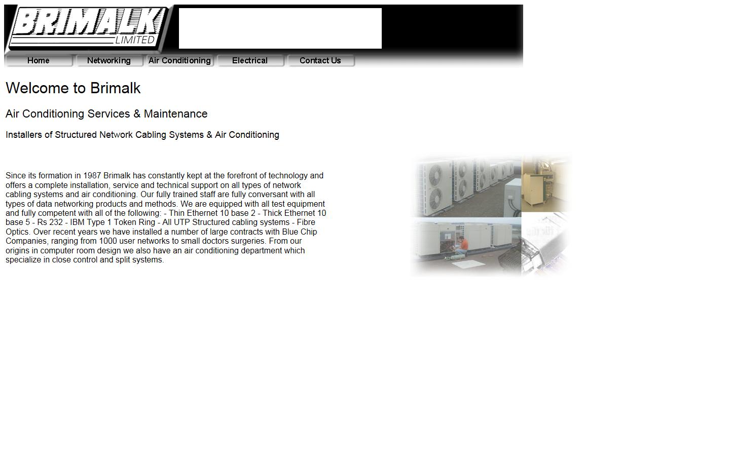 Since its formation in 1987 Brimalk has constantly kept at the forefront of technology and offers a complete installation, service and technical support on all types of air conditioning, electrical services and network cabling systems.
