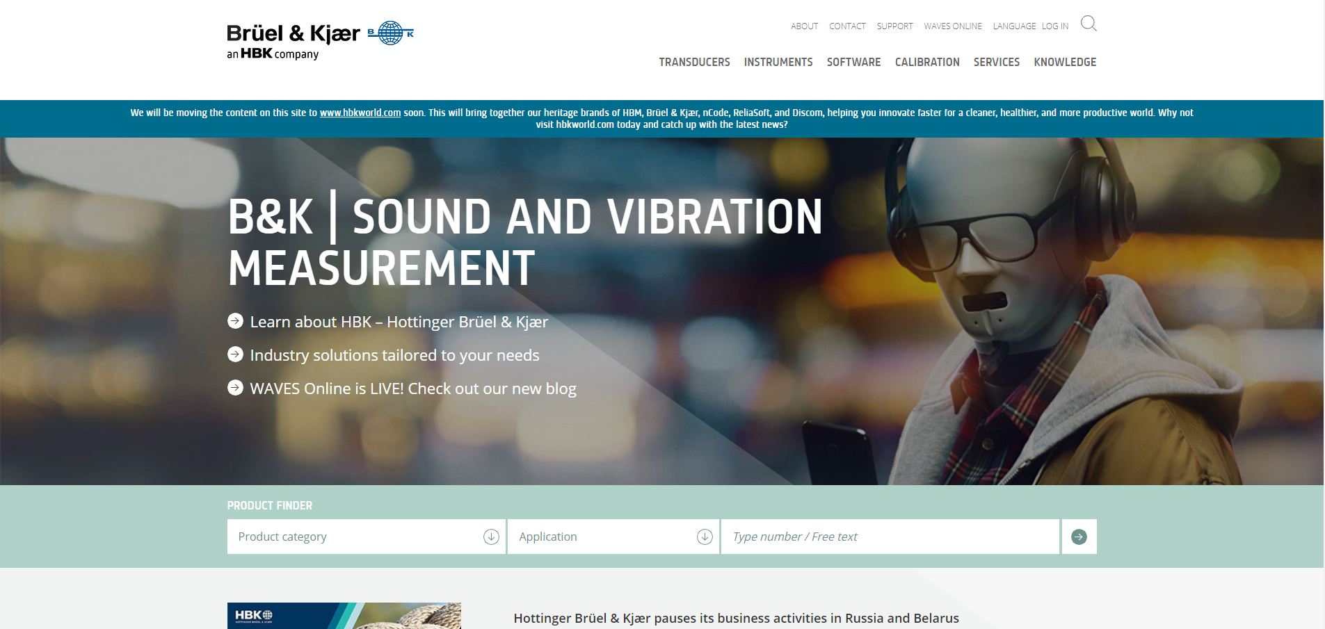 Bruel & Kjaer is a world-leading manufacturer and supplier of sound and vibration solutions for use in a wide range of applications including environmental noise measurements, building acoustics, vibration measurements and quality control for use in the automotive, aerospace and consumer industries, as well as by local authorities.