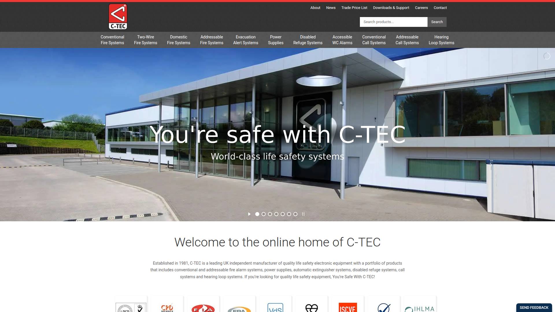 C-TEC was first formed in 1981 and has grown considerably during this time. Since established we have expanded our product range and are now currently trading in over 60 countries worldwide. C-TEC’s commitment to quality is underlined by our ISO 9001 accreditation which we have held since 1994 and our status as corporate members of the British Fire Protection Systems Association (BFPSA).