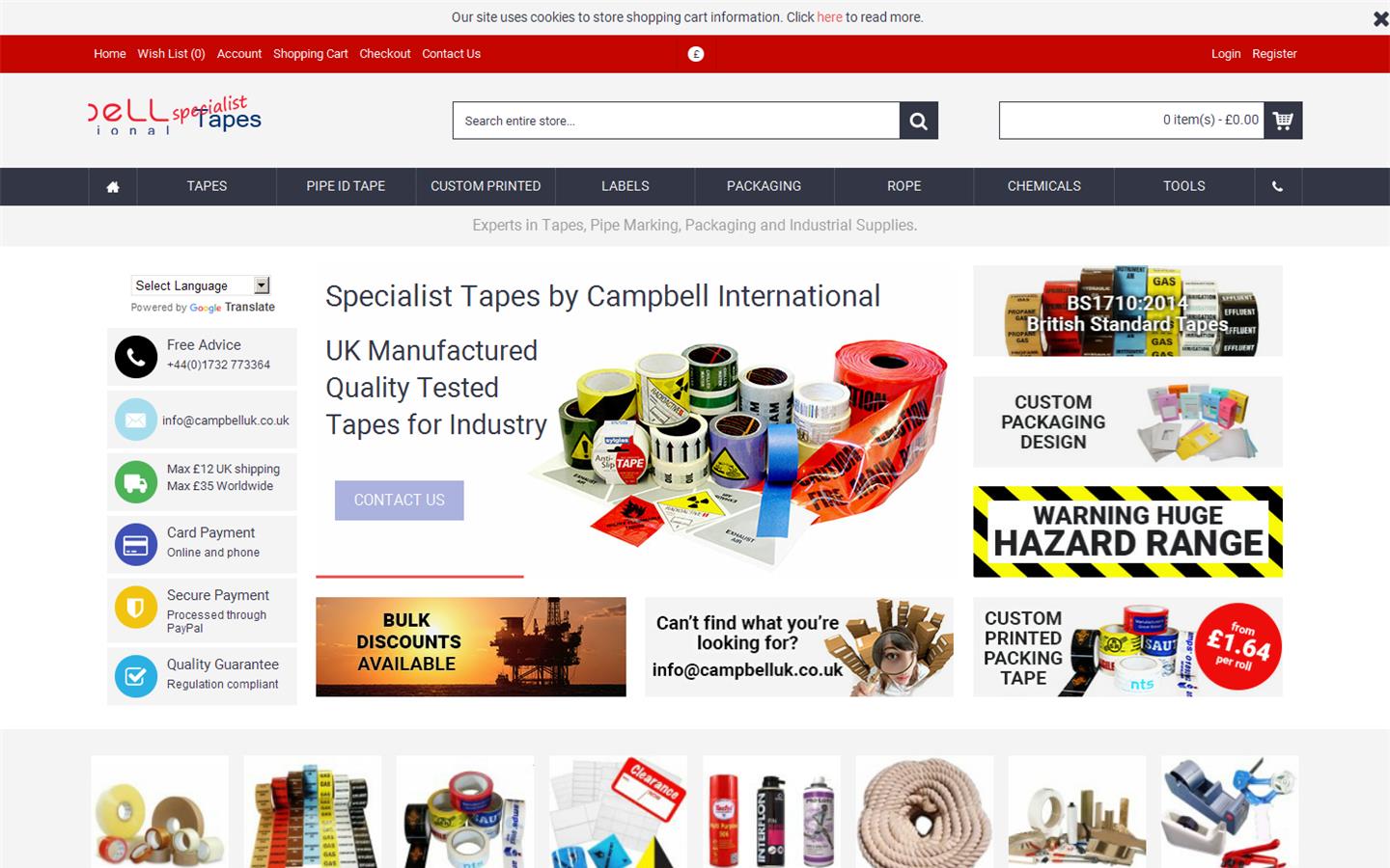 Campbell International supplies quality packaging, tapes and industrial supplies to local and international customers. We pride ourselves on our expertise concerning industry standards, especially to our growing marine customer base, also our ability to offer bespoke products. At all times we seek to provide personal and professional customer service.