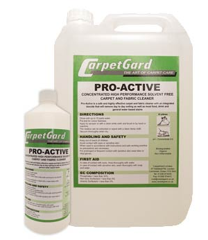 Pro-Active is very low foamed so is particularly effective for buffing, and water extraction method. It can also be used for spotting by hand and best applied by sprayer.