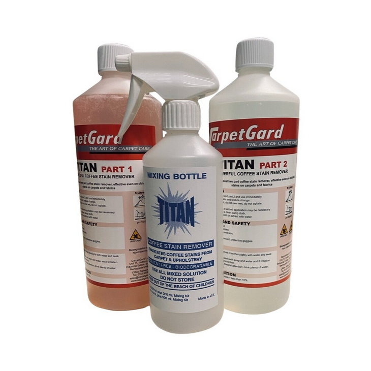 Whether the stain is wet or dry Titan will release it. It is designed especially for tea, coffee, blood, urine and any water marks. Spray on and see the stain disappear.