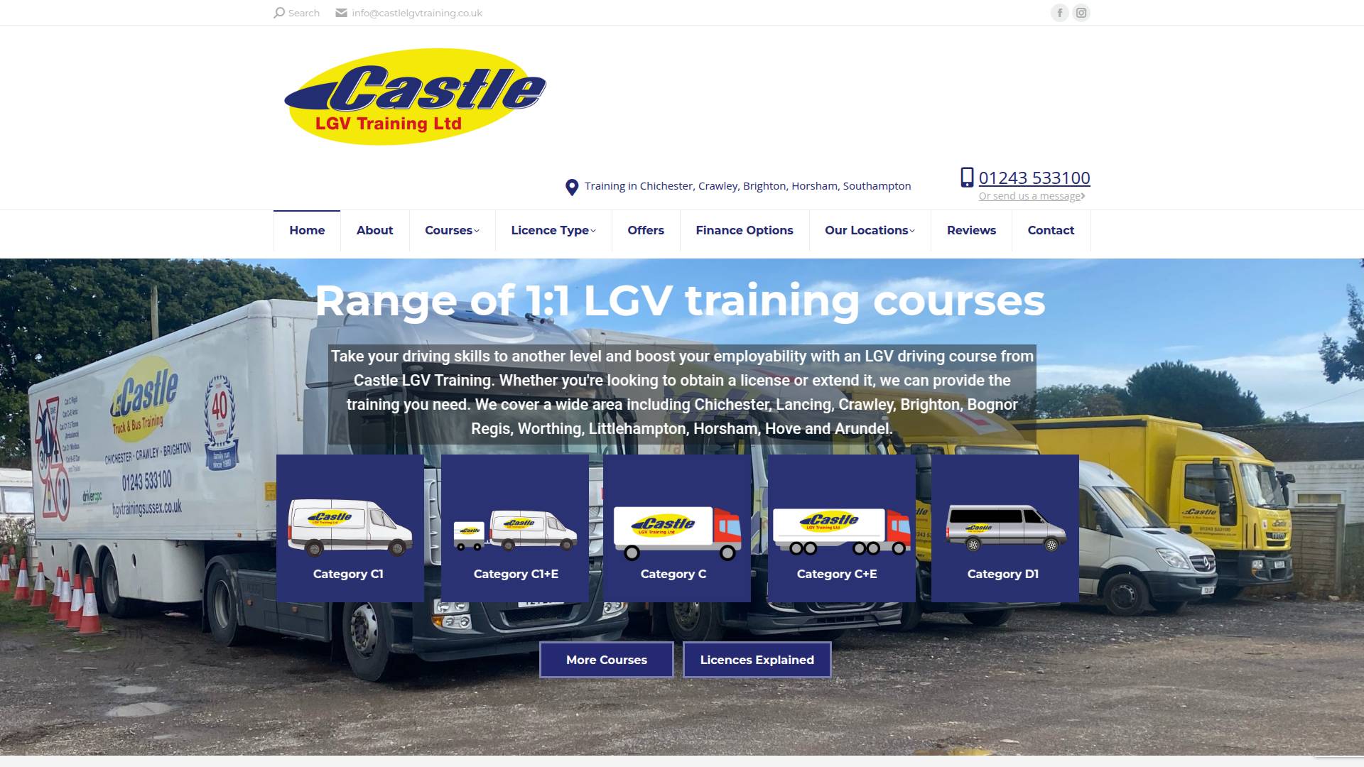 Castle LGV Training is a family run business which has been providing high quality and informative LGV training in the Chichester area since 1980. We pride ourselves on providing 1:1 training with our experienced instructors for people who are learning for the first time or for experienced drivers wanting to update their qualifications with CPC training.