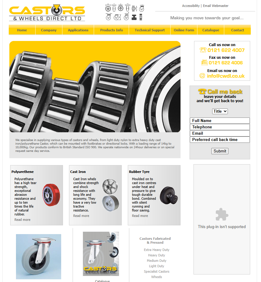 We specialise in supplying various types of castors and wheels, from light duty nylon to extra heavy duty cast iron/polyurethane Castor, which can be mounted with footbrakes or directional locks. With a loading range of 14kg to 10,000kg. Our products conform to British Standard ISO 900. We operate nationwide on 24hour deliveries or on special request same day service.