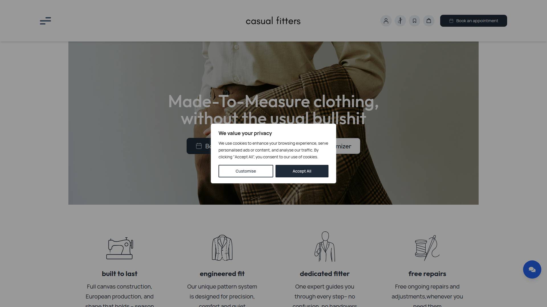 Casual Fitters is a London-based made-to-measure menswear brand offering custom suits and tailored garments through in-store fittings and an online design customiser.