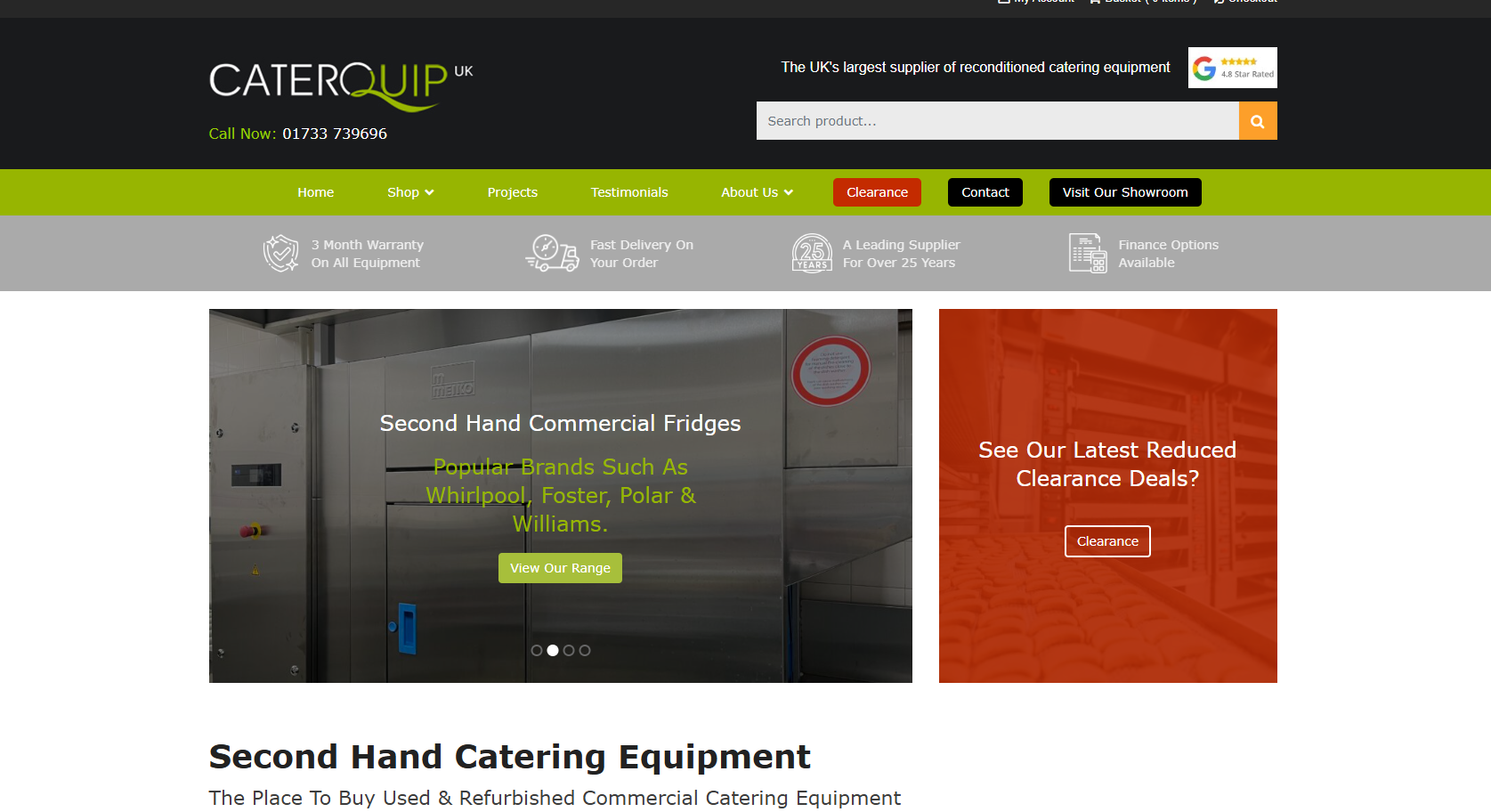 Welcome to Caterquip, one of the UK’s leading suppliers of used, refurbished and second-hand catering equipment. Explore our range below to get a taste of what we have to offer from gas ranges, fryers, and ovens to fridges and more. Can’t find what you’re looking for? Get in touch with us online, or call us on 01733 739696.