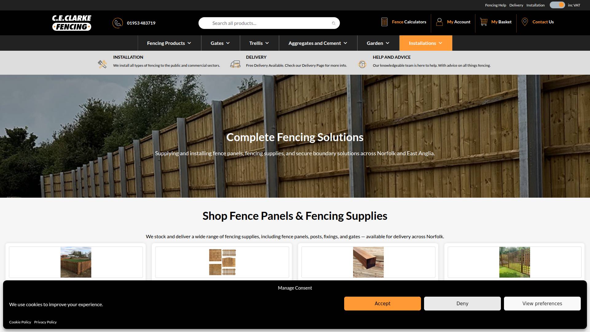 In addition to installation services, we supply fencing materials directly to the public and trade through our website. Our growing product range includes closeboard panels, lap panels, post and rail, picket fencing, gates, and fixings — with local delivery options and free delivery in selected postcode areas.