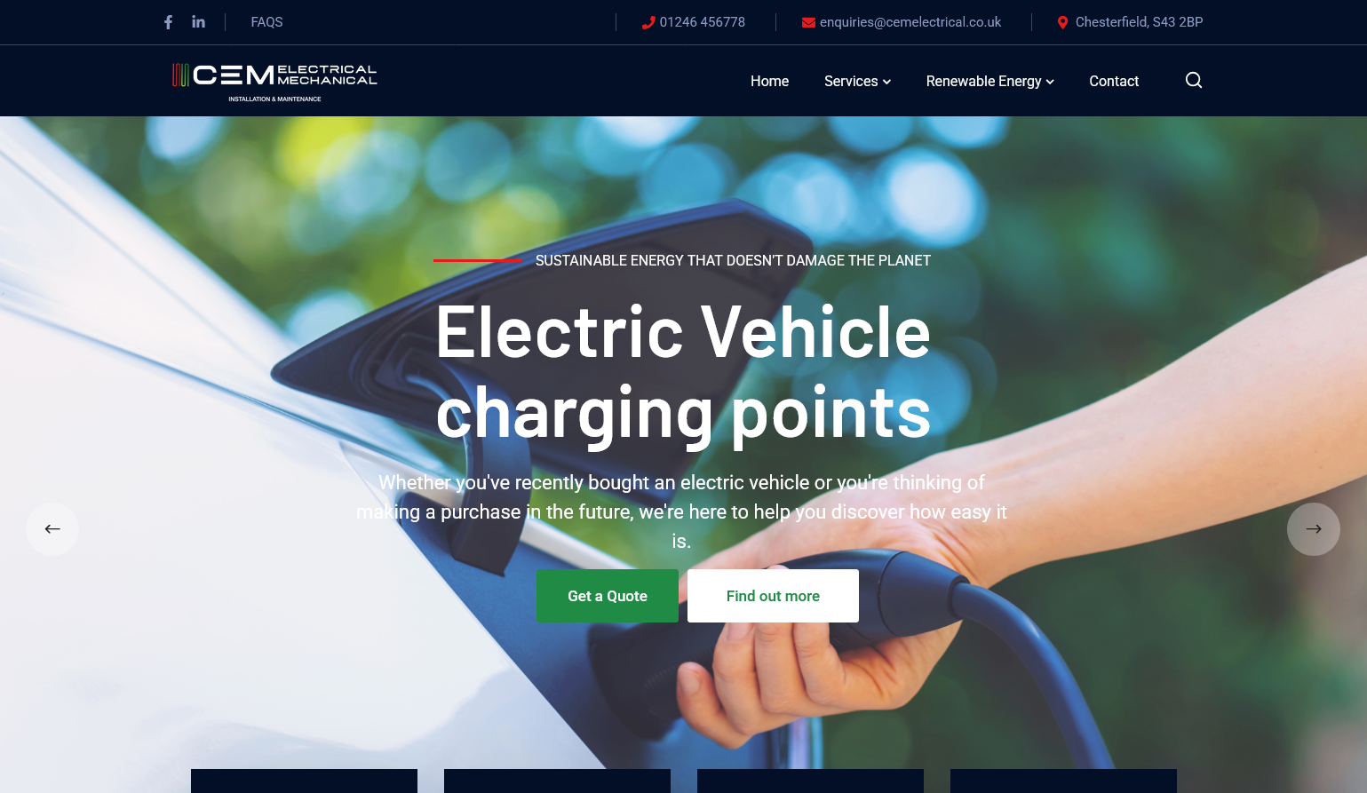 For businesses, the advantages of workplace electric vehicle charging can be huge. Switching to electric vehicles and on-site charging points doesn’t need to add extra work for your business. These new technologies exist to make a vital part of your business more efficient. And so does our service. CEM Electrical are here to give you all the specialist help and guidance you need to future-proof your transport and improve your offer to staff, customers and visitors alike. Taking all the strain out of making the switch to electric vehicles, we let you take care of what you’re best at.