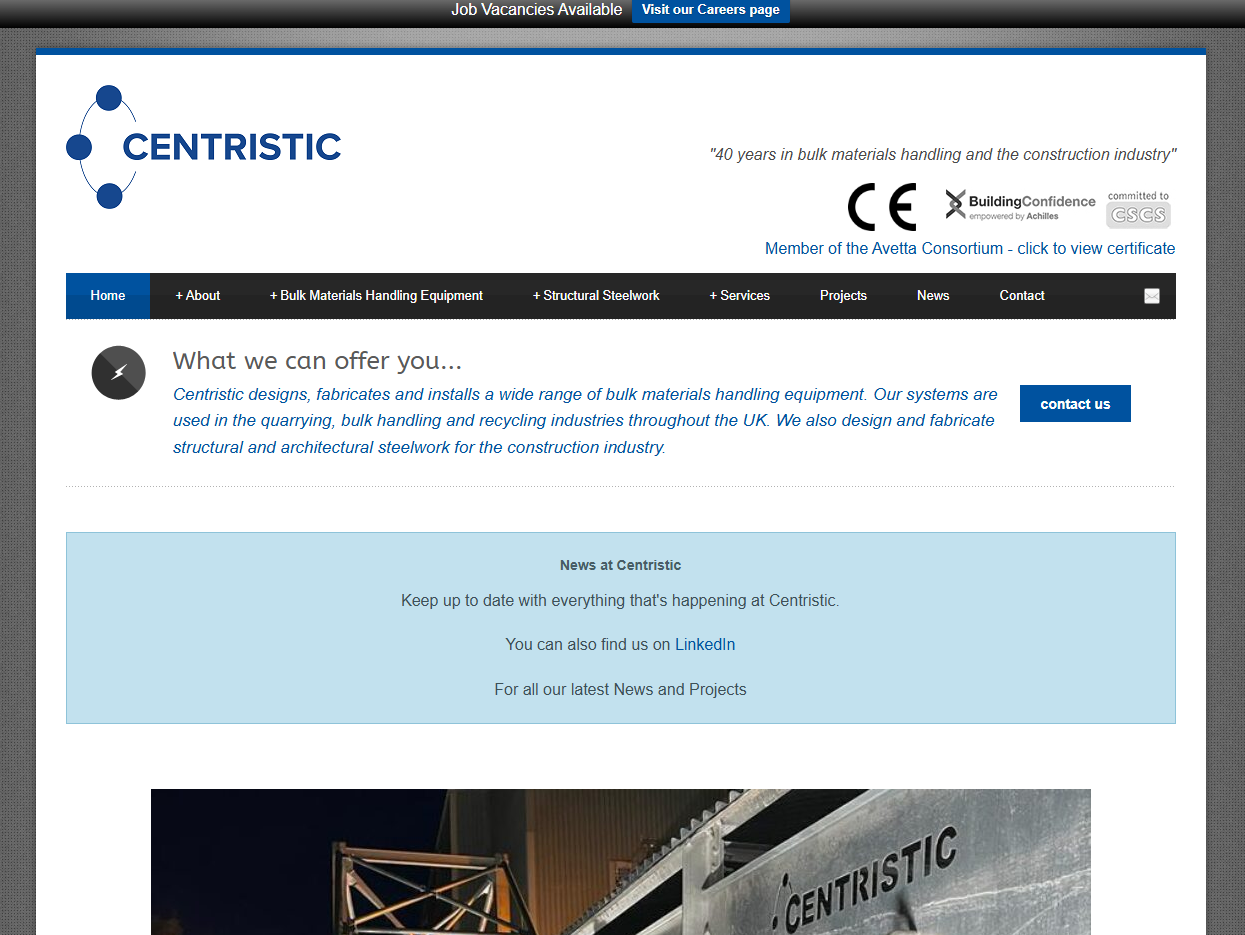 Centristic can handle projects from the early conceptual stage, working with clients' planning and development teams, through to full design, detailing, fabrication, erection and commissioning, either on turnkey or package basis. With a wealth of experience coupled with the benefit from continuing investment in CAD and modelling systems, designs are innovative, competitive, and flexible, providing clients with robust solutions for their operational challenges.