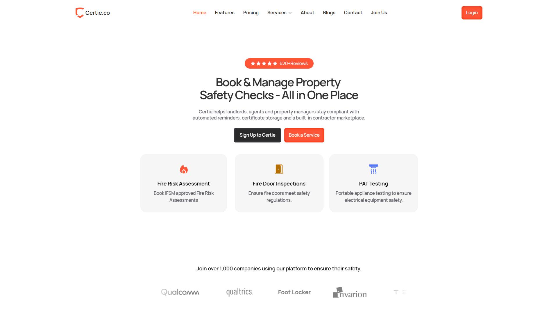 Certie is a UK-based software company specialising in property compliance management. From one digital platform, landlords, property managers and businesses can instantly book essential compliance services and track every requirement across their portfolio in real time.
