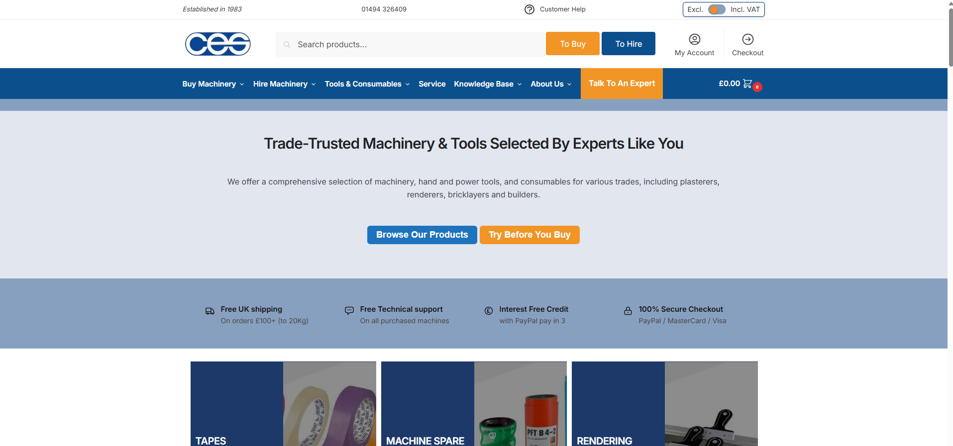 We now also sell a wide range of tools, consumables, spare parts and personal protective equipment (PPE) from our online tool shop. We offer a range of delivery options to suit you from next day delivery to free delivery. In our online tool shop you will find a range of Rendering tools, Plastering tools, Brick Layers tools, Electricians tools, General Builders tools and Tilers tools. Don't forget to check out our clearance section, you might just bag yourself a bargain! To visit our online tool shop click here or to order over the phone call 01494 715472.