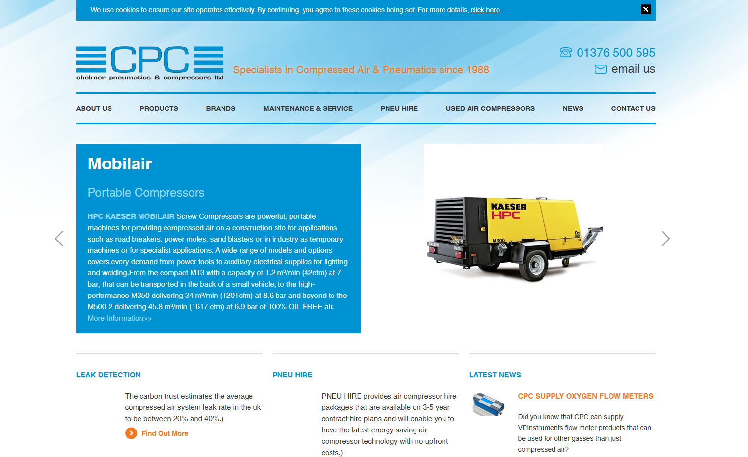 Chelmer Pneumatics & Compressors has grown steadily to become a major provider and installer of air compressors, nitrogen generators and vacuum systems throughout East Anglia, London & the South East.
