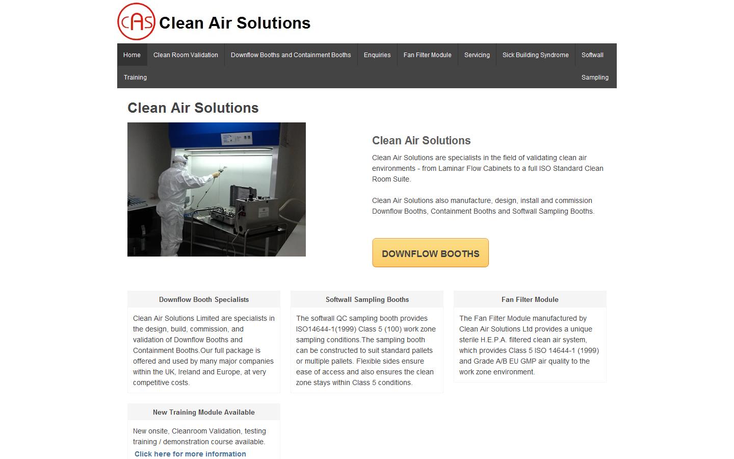 Clean Air Solutions provides essential and reliable cleanroon equipment, downflow booths, validation, softwall sampling booths, fan filter modules, etc. We also offer service validation visits for many air devices and training.