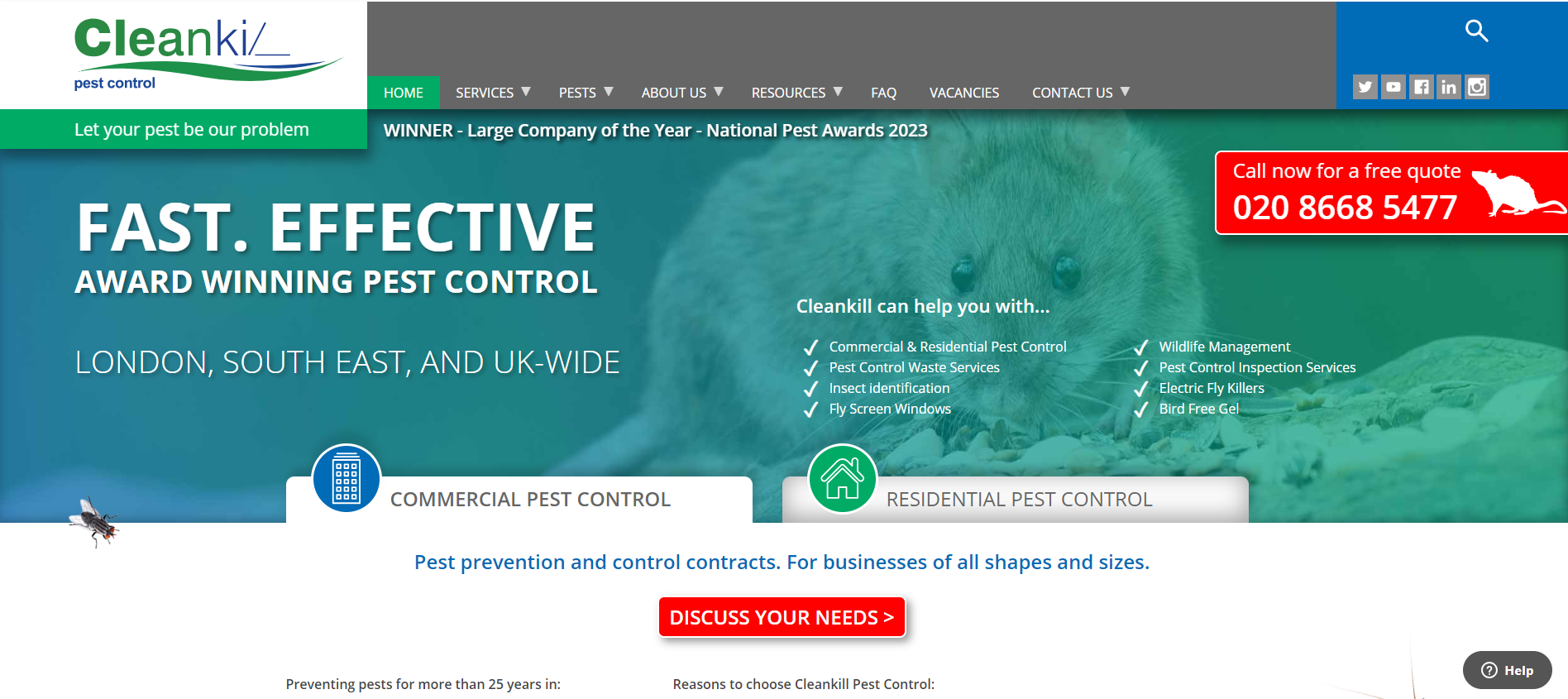 Whether you have problems with pest birds, rodents, cockroaches, wasps, bedbugs or ants, for speedy, effective and discreet pest control or pest management services call Cleankill.