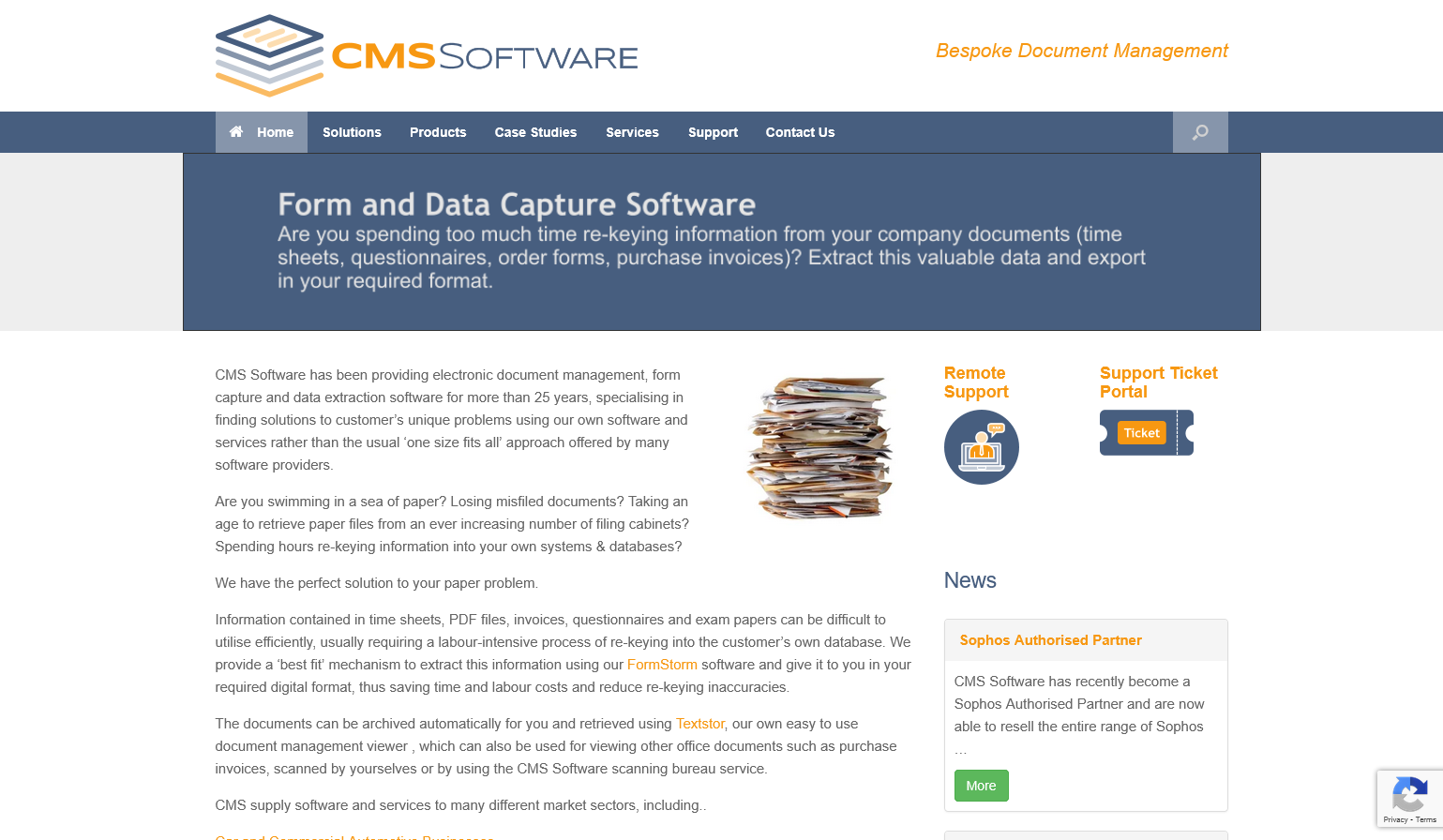 Leading specialists in electronic document management solutions, CMS Software have many years’ experience in helping clients who are spending hours re-keying information and losing misfiled documents.