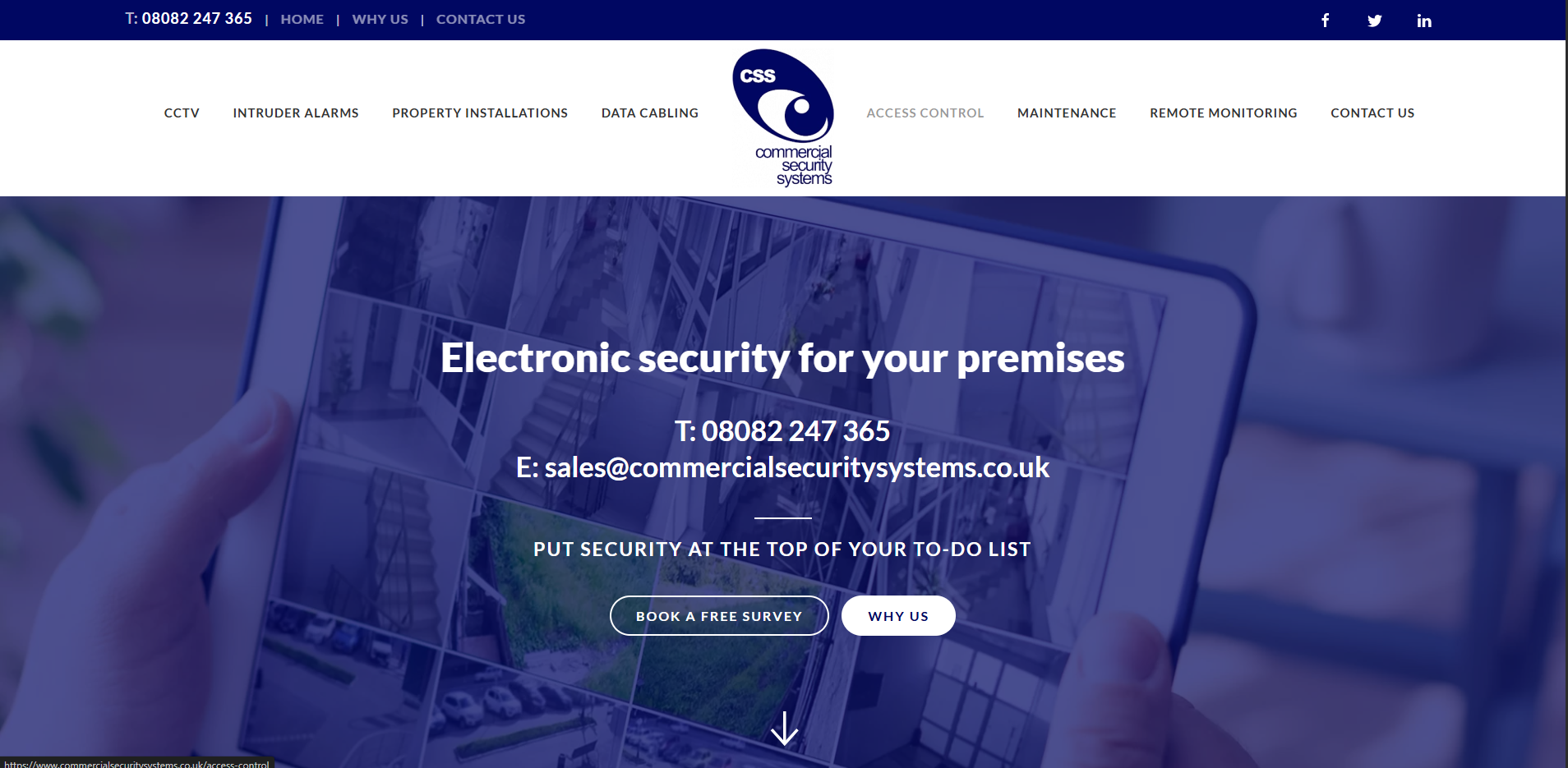 Founded in 2005, Commercial Security Systems is regarded as one of the leading electronic security systems providers in the UK specialising in the design, installation and monitoring of CCTV, Intruder Alarms, Access Control and Fire Safety systems across a diverse client portfolio. Which include; small businesses, large blue chip multi-site commercial organisations, private schools, commercial premises, industrial sites, local authority buildings and bespoke domestic premises.
