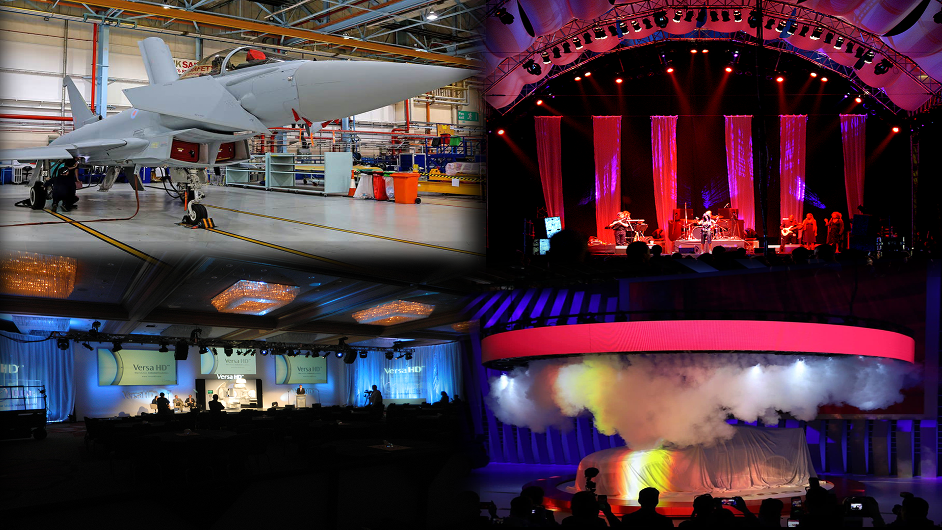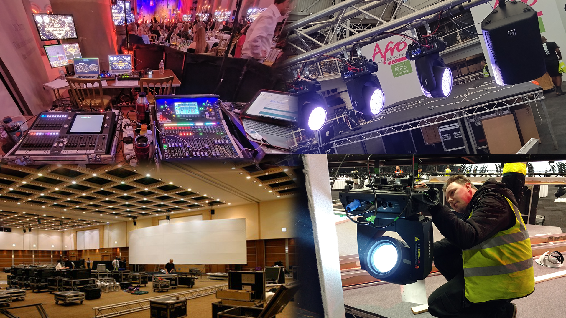 - Lighting, sound, LED screens & projection