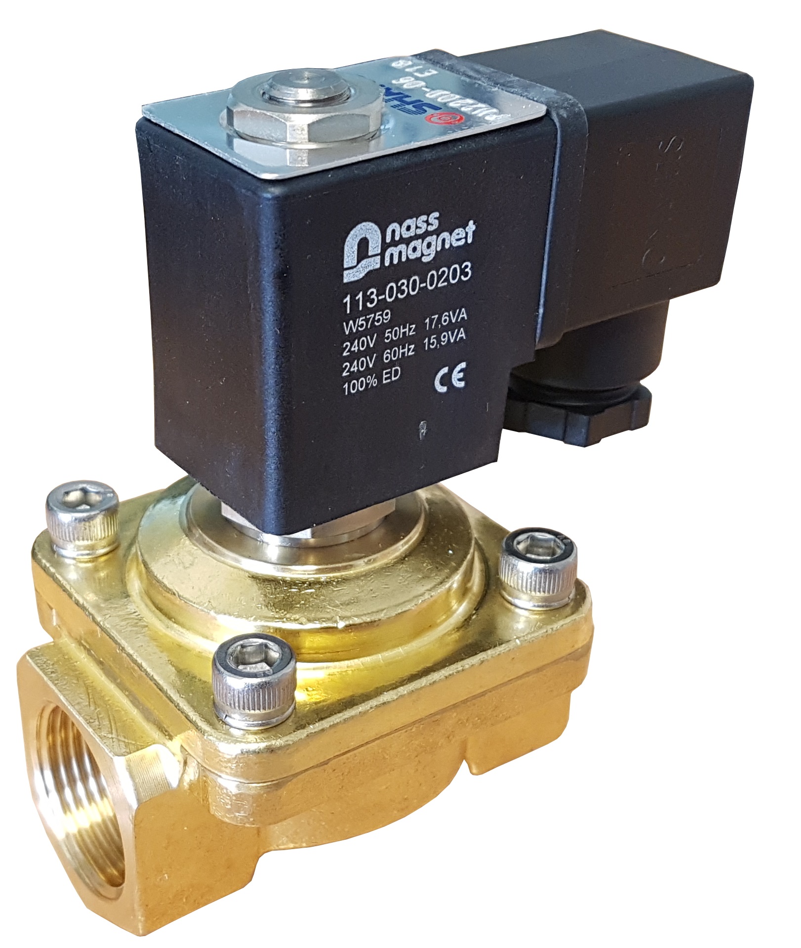 Brass solenoid valves to suit most air, water, oil, steam, fluid and gas applications. Port sizes from M5 up to 3 inch, 2 and 3 way normally closed, normally open and latching function.