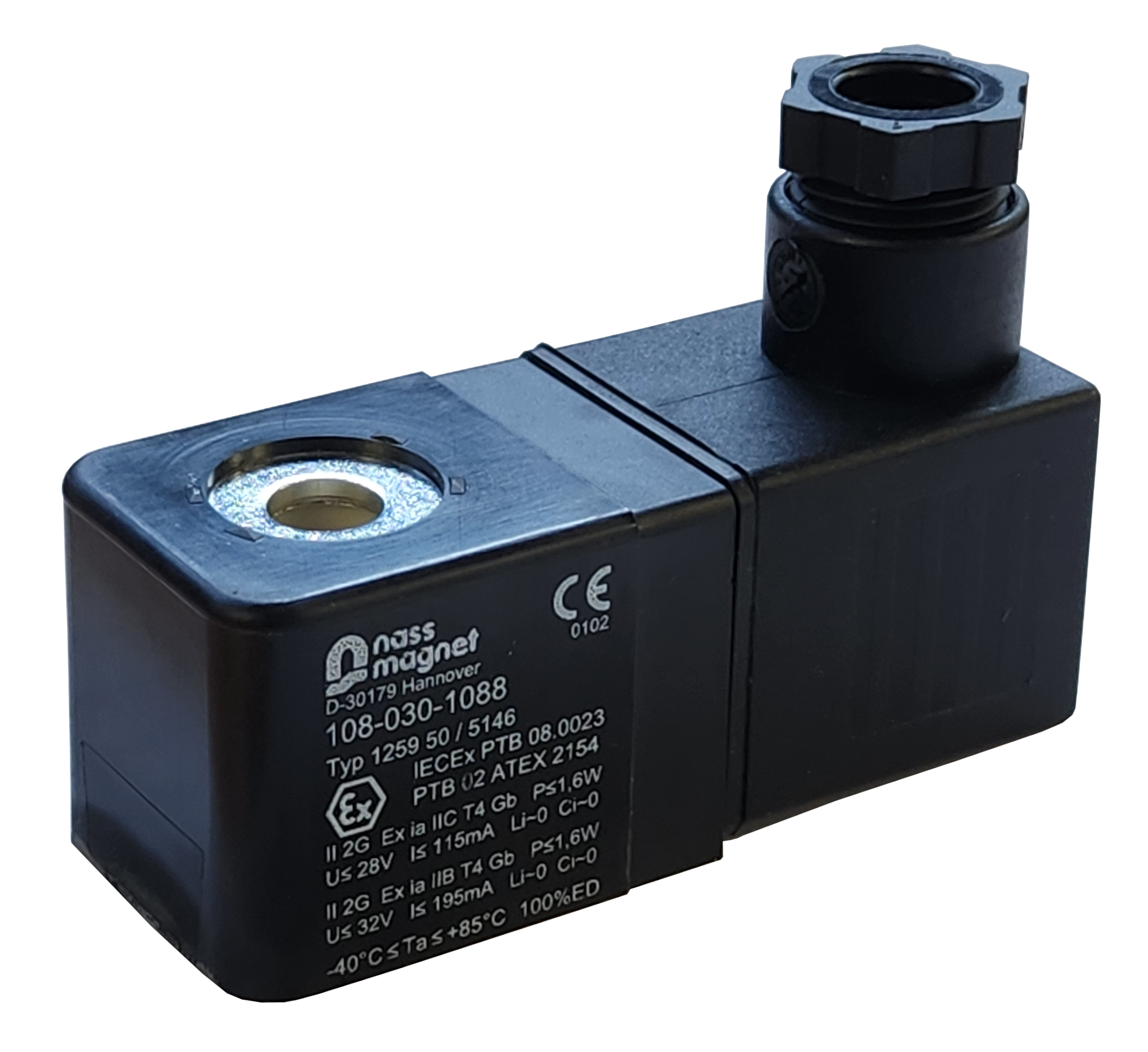 Solenoid valve coils according to size and power level, IP54, IP65, IP67, IP68 with DIN43650A, B + C connection available from 6v DC up to 380v 50/60Hz and ATEX Exm with 3 meter cable. We also stock explosion proof Exd coils from 12v up to 240v 50/60Hz and 24vDC Exia coils, both with M20x1.5 conduit entry.