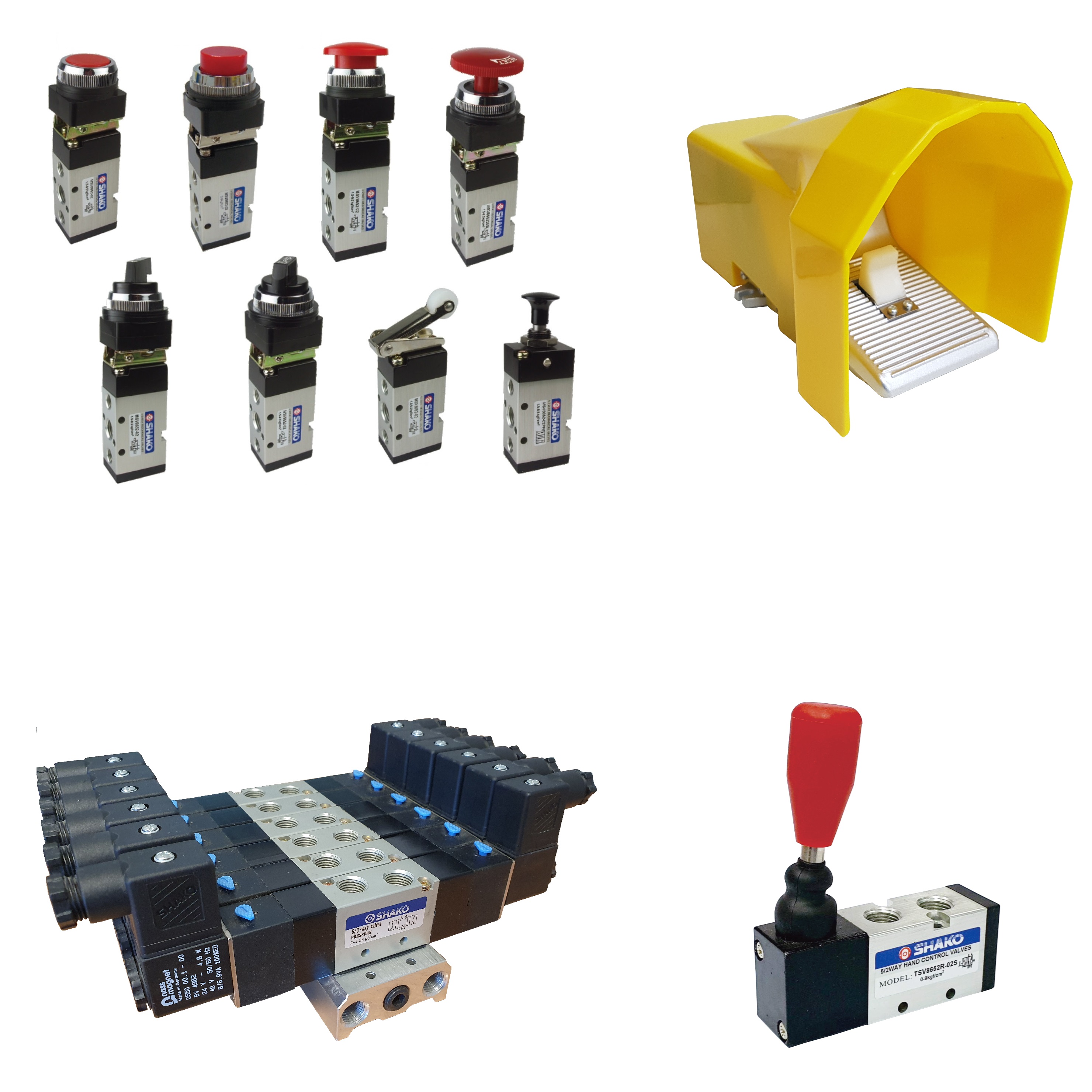 Pneumatic solenoid, mechanical and hand air control valves. Push/Pull, Rotary Lever, Twist Select, Push Button, Roller, Switch + Foot pedal 2/2, 3/2, 4/2, 4/3, 5/2 and 5/3 way and related airline accessories.