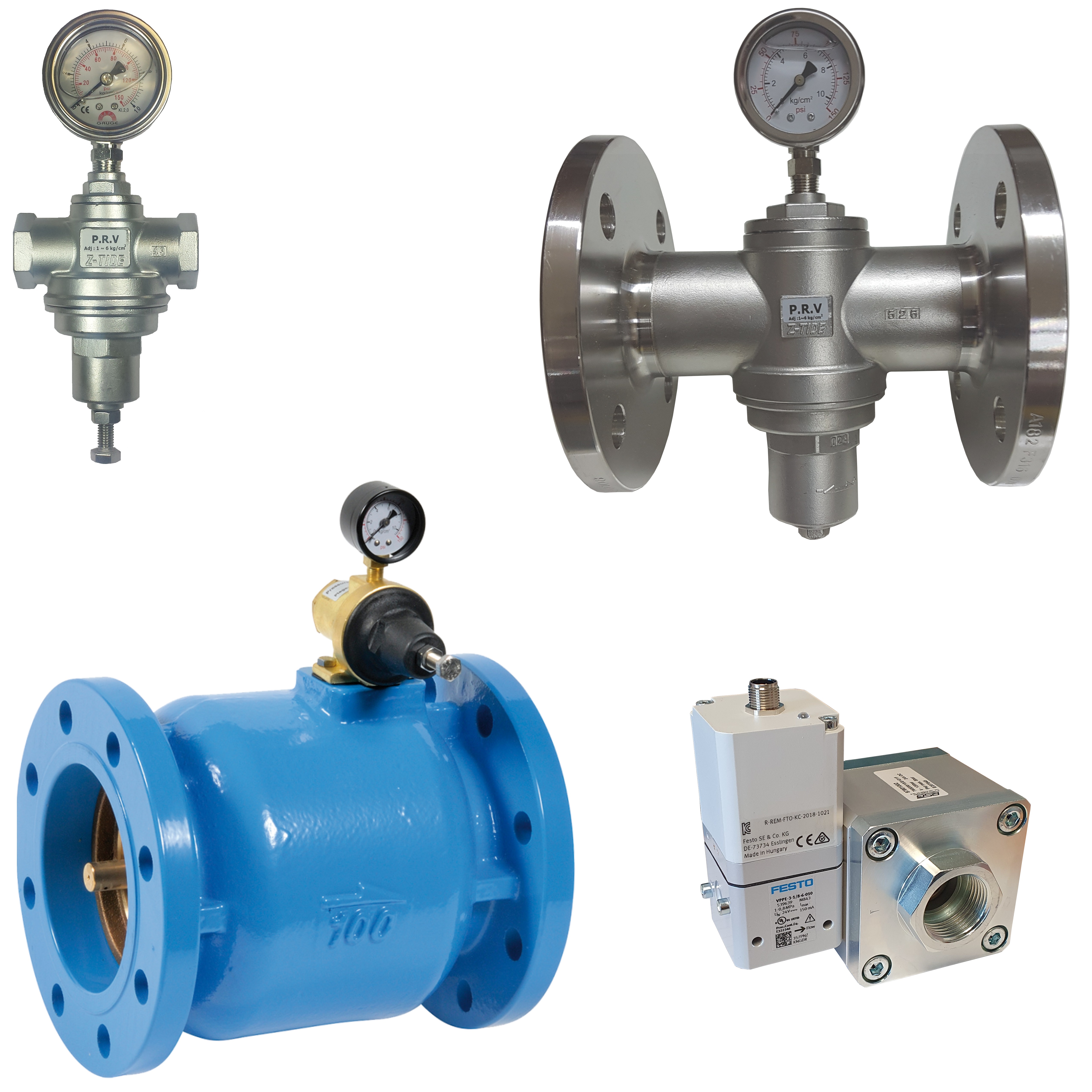 Pressure Reducing / Regulating valves (PRV), Pressure Sustaining / Back pressure valves (BPV) and Safety Pressure Relief / Limiting valves (PLV). 1/8 to 2 inch thread and DN15 to DN500 Flange in Bronze, Stainless steel and Ductile Iron.