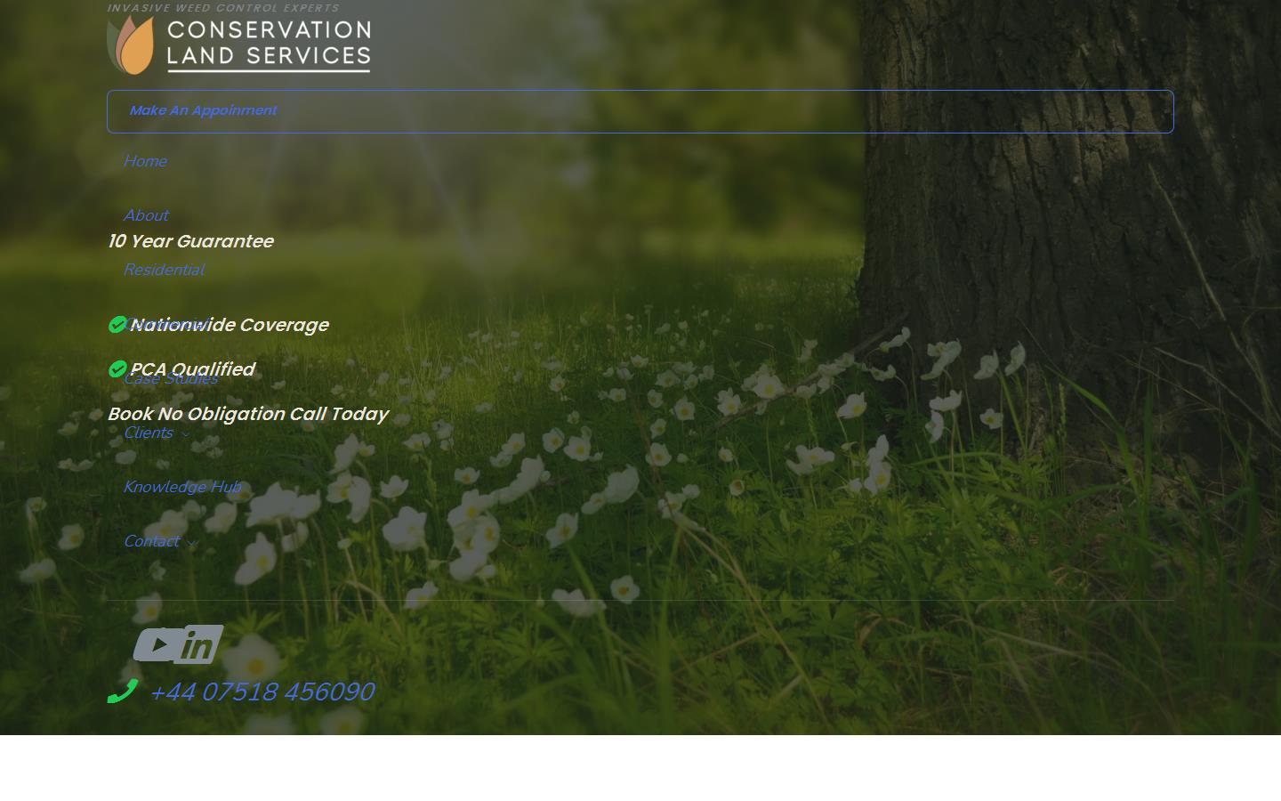 INVASIVE WEED CONTROL EXPERTS Specialising In Japanese Knotweed and Bamboo treatment and removal - 10 Year Guarantee - Nationwide Coverage - PCA Qualified Book No Obligation Call Today +44 07518 456090